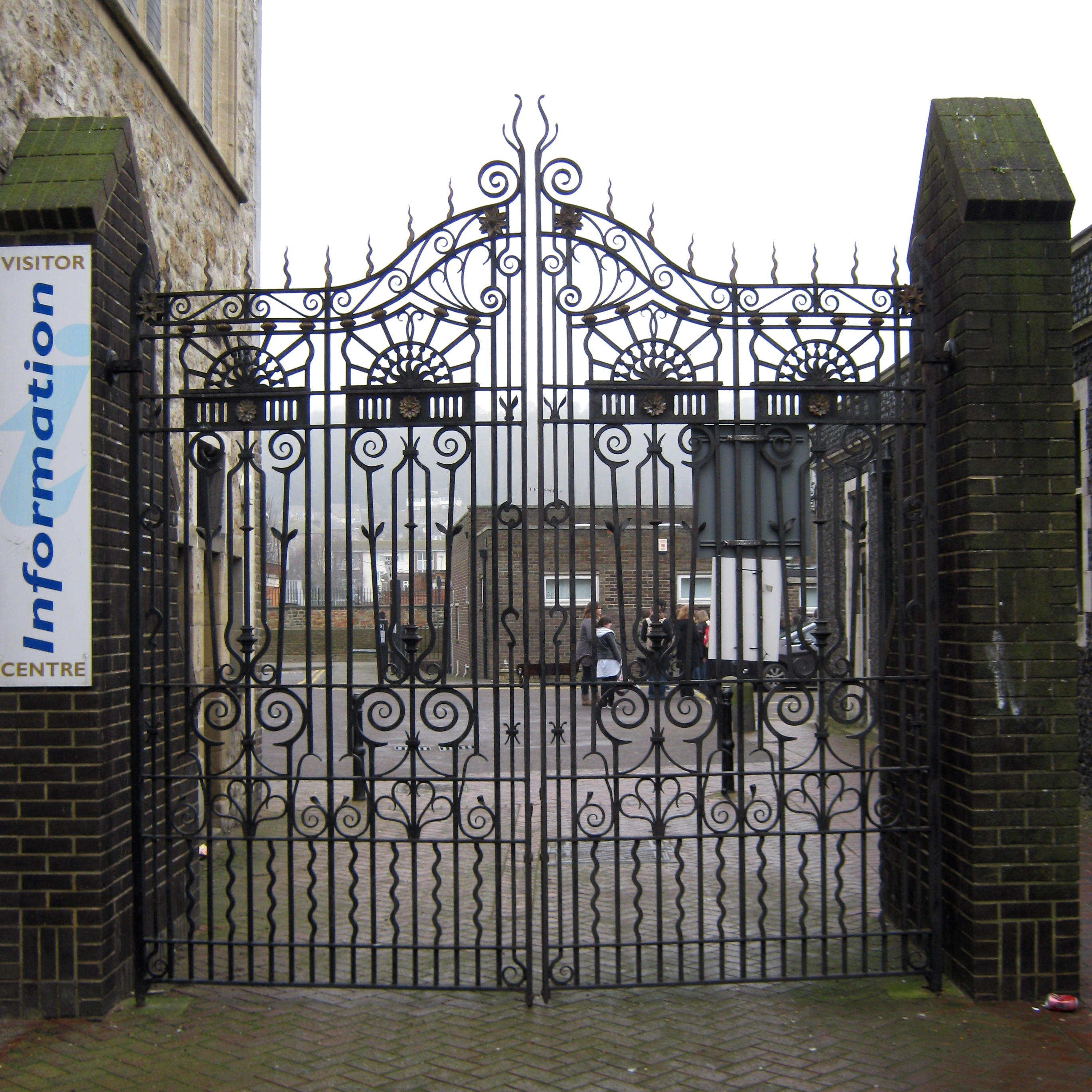 At that time, there was a wrought iron fence in front of Maison Dieu House – now the Dover Town Council offices, which terminated at the Maison Dieu. Opposite the front door of Maison Dieu House was a single gate and double wrought iron gates nearer the Maison Dieu. The latter were ornate gates and had been made by Francis Morton of Garston in Liverpool. They were the carriage entrance to the House.