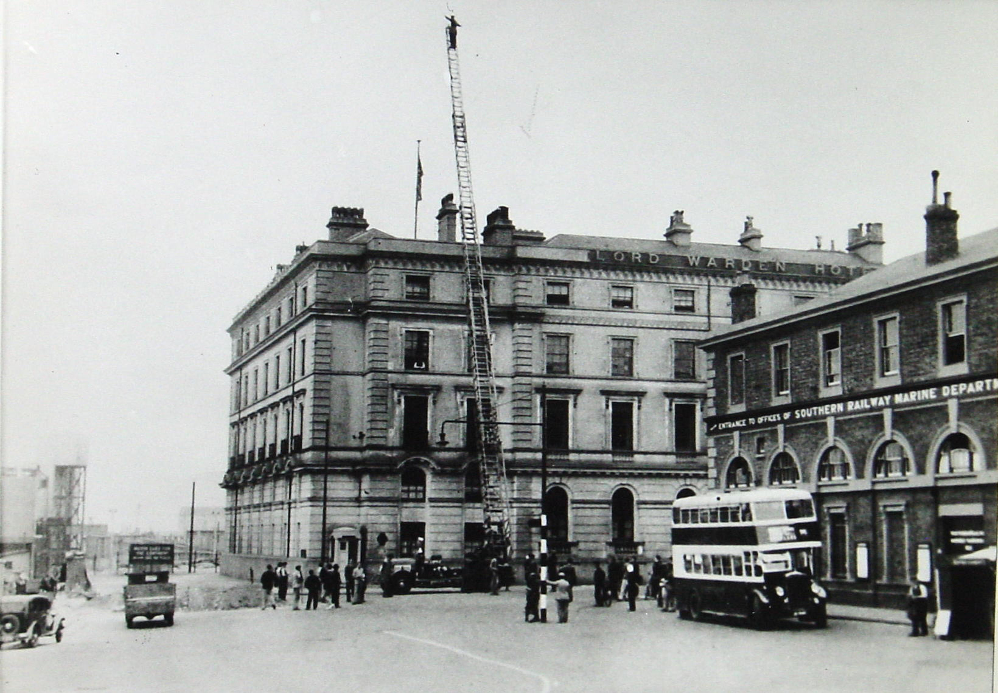 Later in the War, the Germans moved the wreckage to deeper water but her bell was rescued. After the War, the proprietor of a garage in Germany gave the bell to the Nationalised Southern Railway and it was hung in Southern House, as the Lord Warden Hotel was then called. It can now be seen in the Dover Transport Museum.