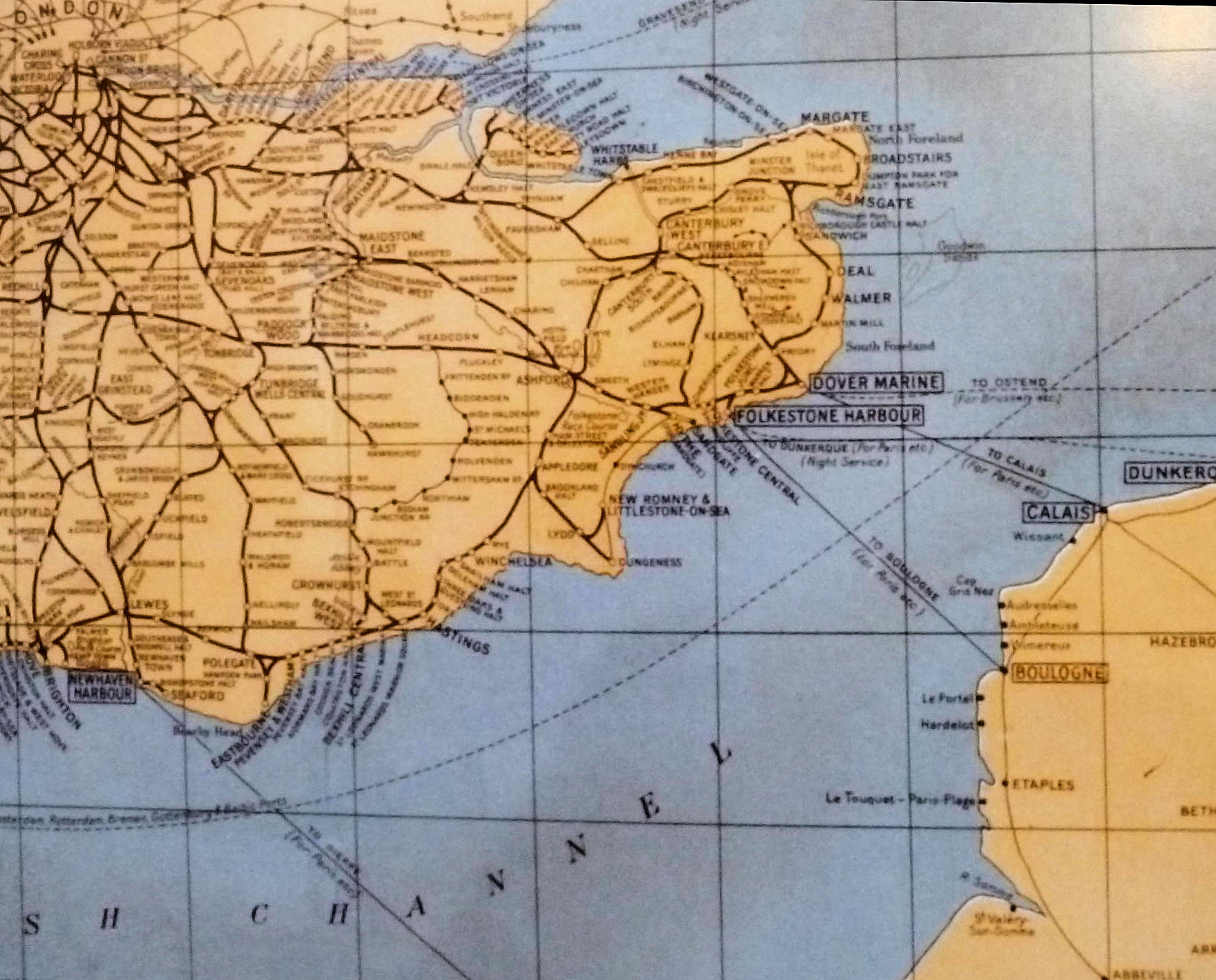 Railway services from and to Dover, according to a 1938 advert included: