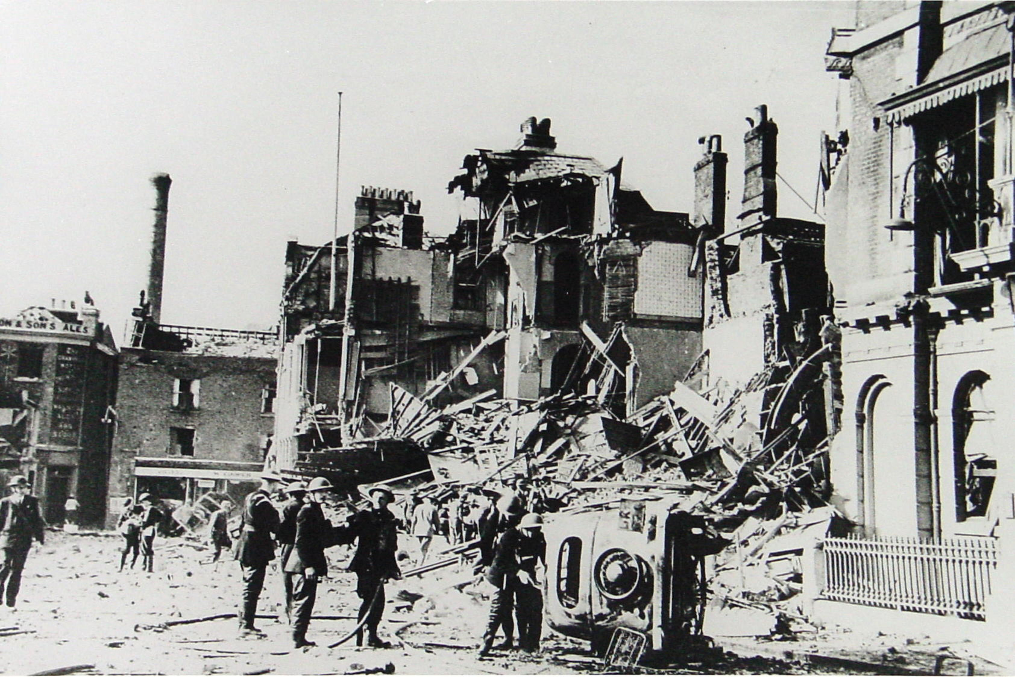 World War I Bombing of Dover. 113 raids,185 bombs dropped, 23 shells hit the town. 13 men, 7 women and 3 children killed 36 men, 23 women and 12 children injured. Dover Library