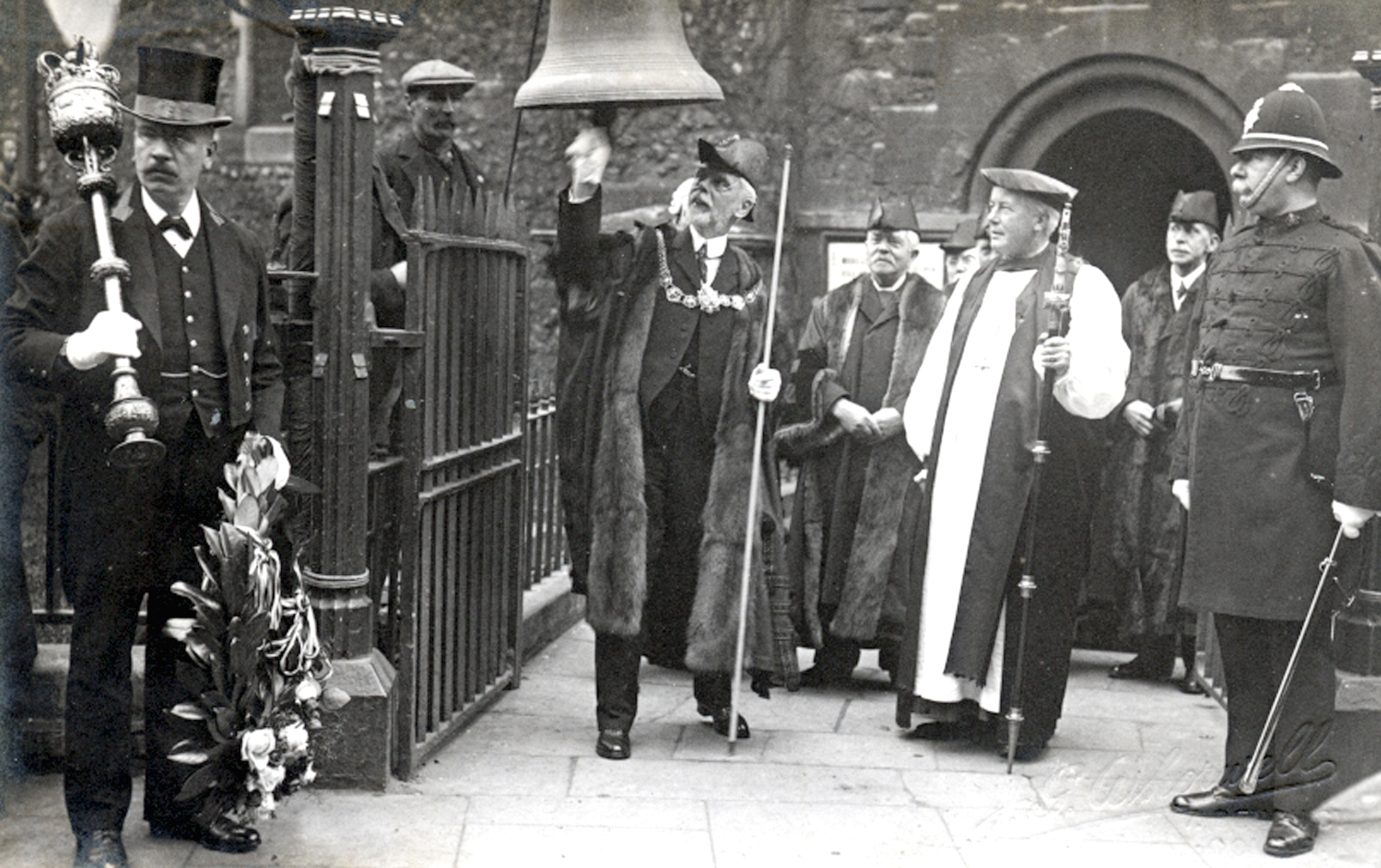 Before the war ended Edwin accepted, from Vice-Admiral Keyes, the Bell used by the Germans on Zeebrugge Mole to give warning of British attacks by sea and air. The King of the Belgians in recognition had given it to the town for the Zeebrugge Raid. In 1923, it was placed in its permanent position on the front of the Town Hall, under a canopy.