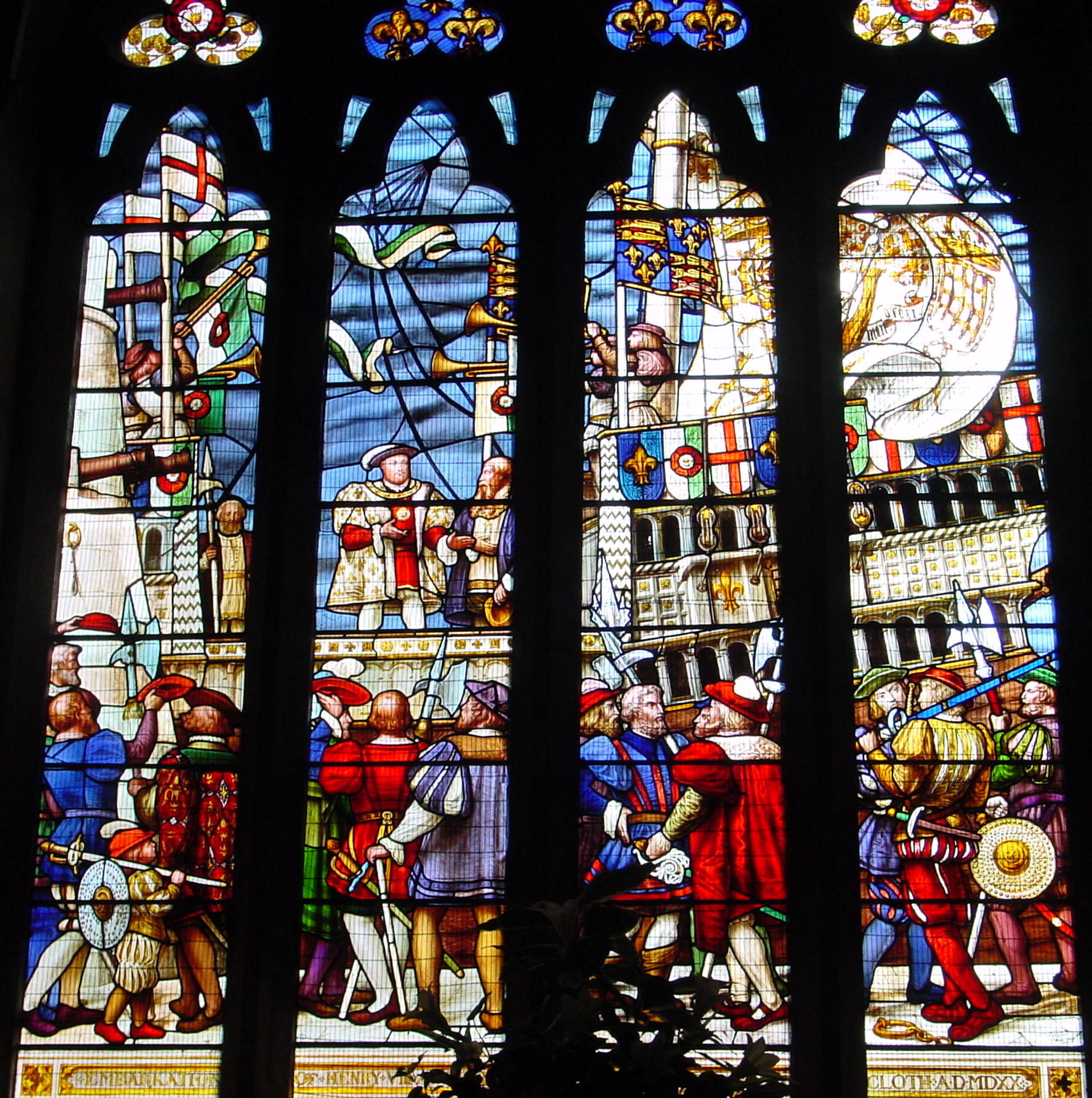 Thomas’s residence and practice was 68 St James’ Street and in 1851 he took James Stilwell into partnership. Nine years later, Thomas died and in his Will, he bequeathed a silver vase valued at £200 to be used to pay for a stained glass window in the Maison Dieu dedicated to Captain William Allen. A relative of Thomas, Captain Allen had rescued the ship Ann in Bombay harbour some years before and the underwriters had presented him with the vase. On his death, he bequeathed it to Thomas. The window it was used to pay for is the Embarkation of Henry VIII at Dover for the Field of the Cloth of Gold, 31 May 1520.