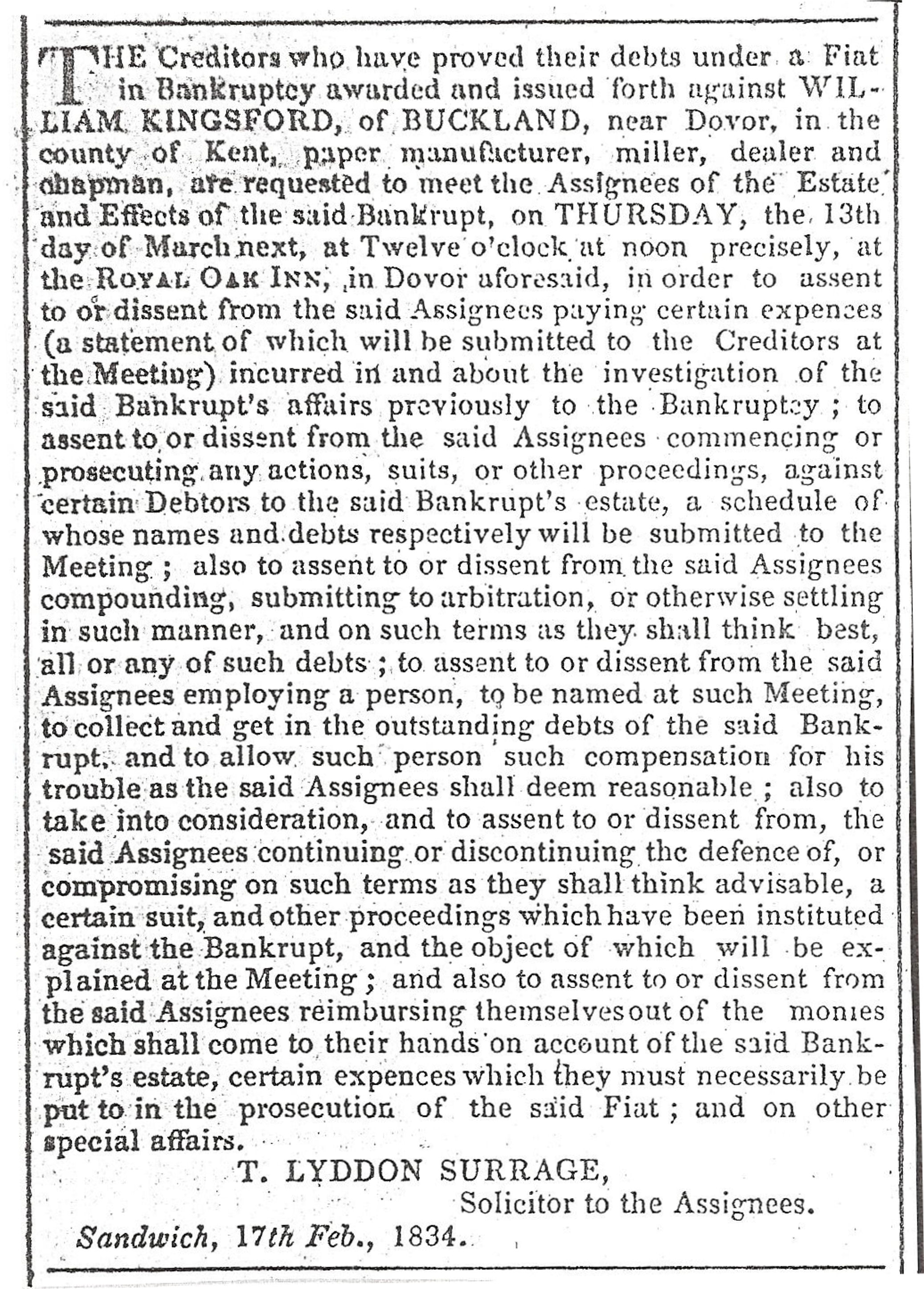 Land, at the back of the farmhouse, through which a footpath to Poulton that eventually became Coombe Valley Road ran, George sold to John Finnis, brick maker. He also sold the land for the workhouse, which eventually became Buckland Hospital. Shortly after George was elected to the Town Council and over the next three decades, he farmed the remaining lands, selling off parcels for development when the price was right.