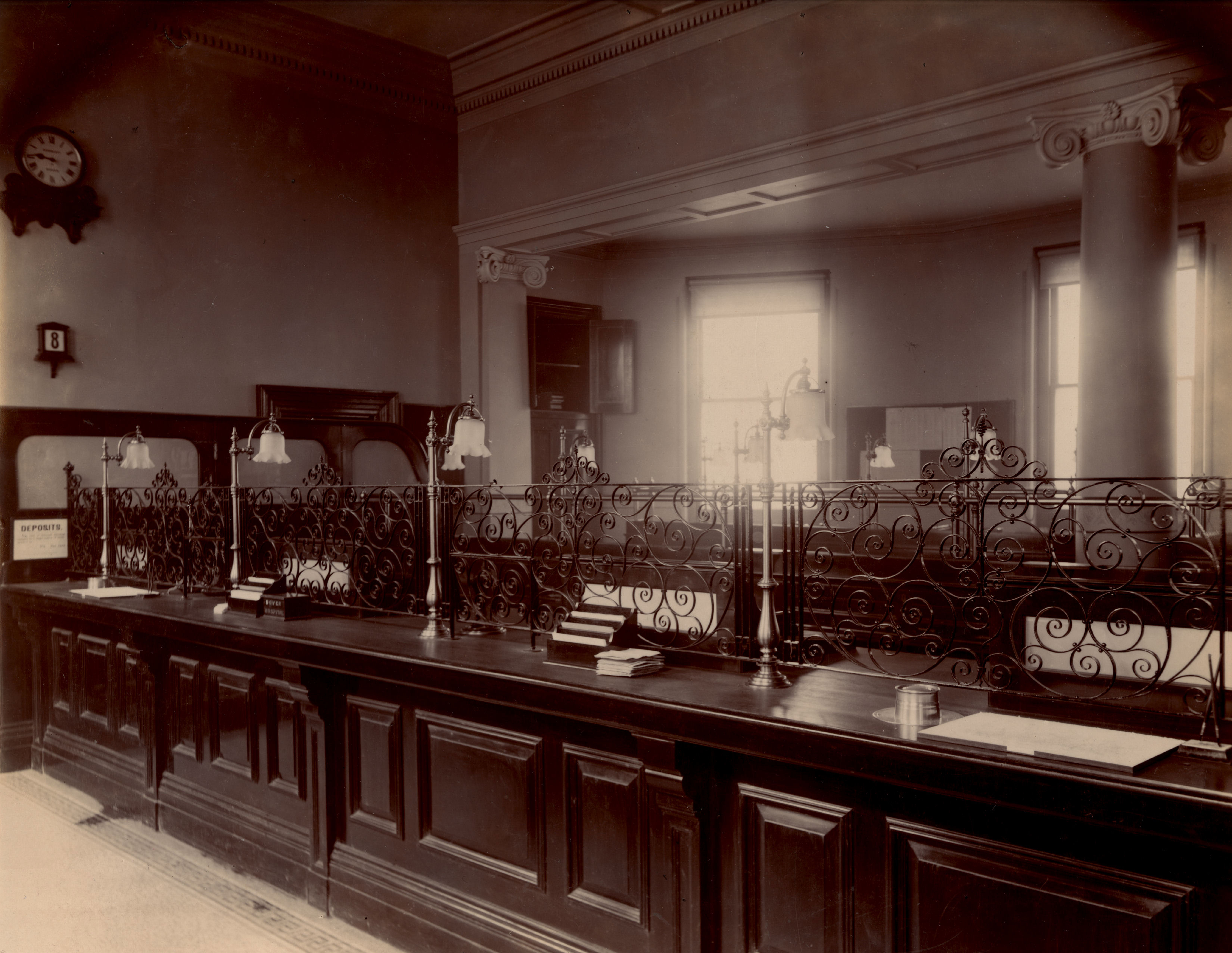 National Provincial Bank, New Bridge House c1893 -1910, note the Dover Hospital collection box on the counter. Reproduced by kind permission of The Royal Bank of Scotland Group © 2013