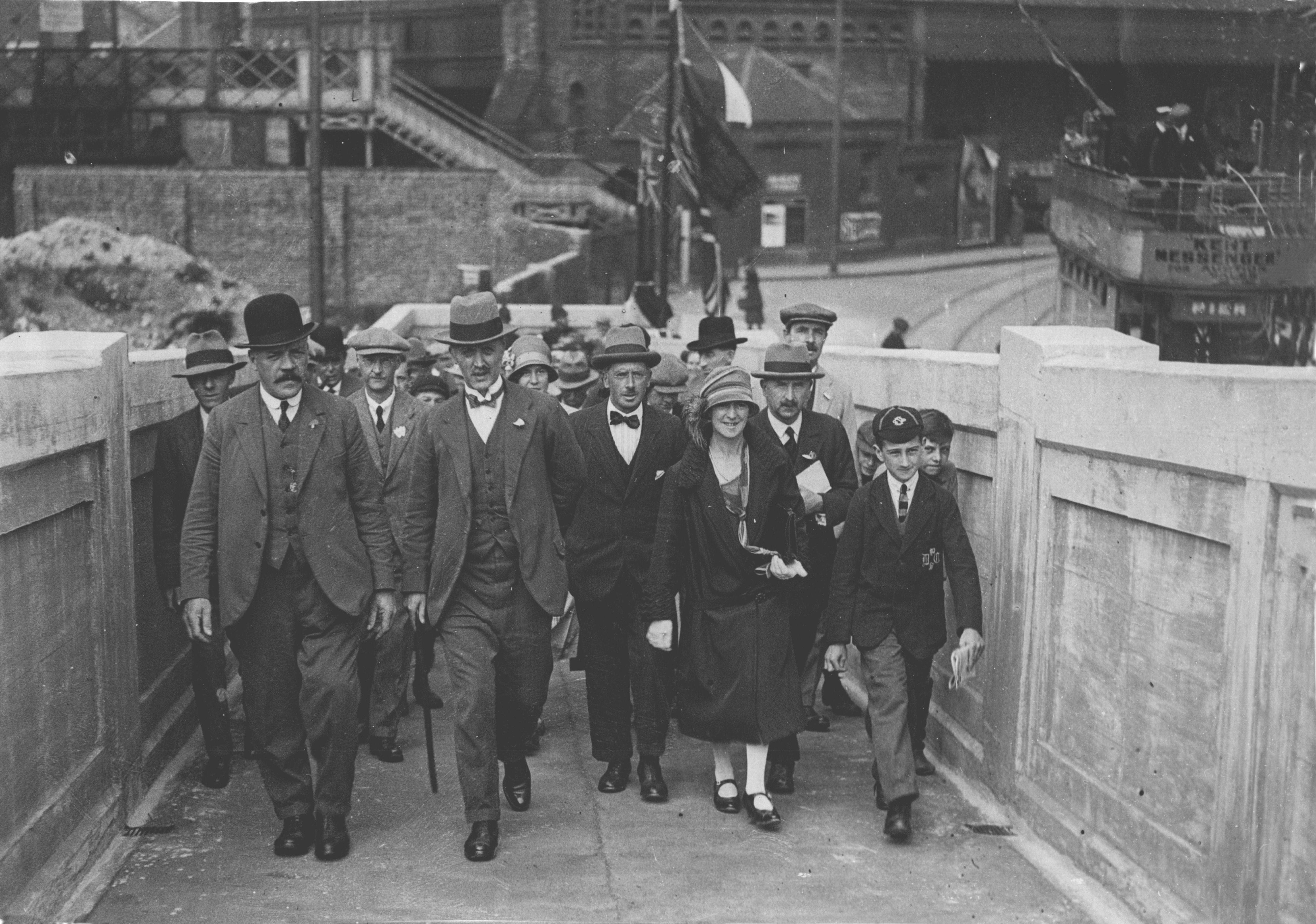 Opening the associated Strond Street footbridge 1925, left Mayor Barwick next to, probably, William E Boulton Smith, the Town Surveyor and responsible for all the works. Richard Barwick