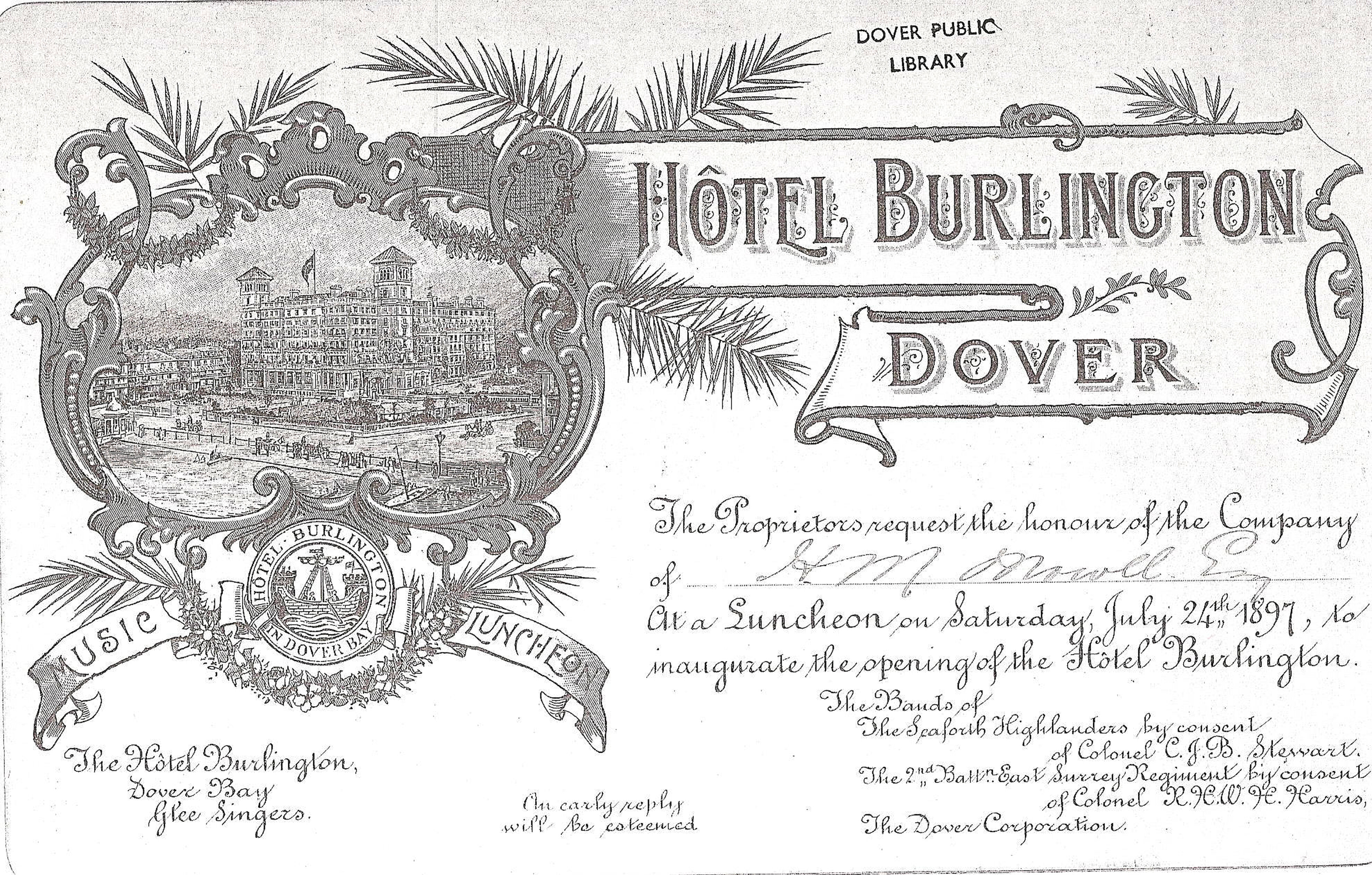 Invitation addressed to Henry Martyn Mowll to the pening of the Burlington Hotel 1897 – Dover Library