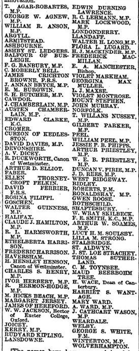 However, two days before a letter, signed by the Anti-Suffrage League, was published in the Times. Lord Curzon of Kedlestone, the Lord Warden of the Cinque Ports (1904-5), founded the League on 12 July 1908. Prominent women in public also actively supported it. The stance was that: