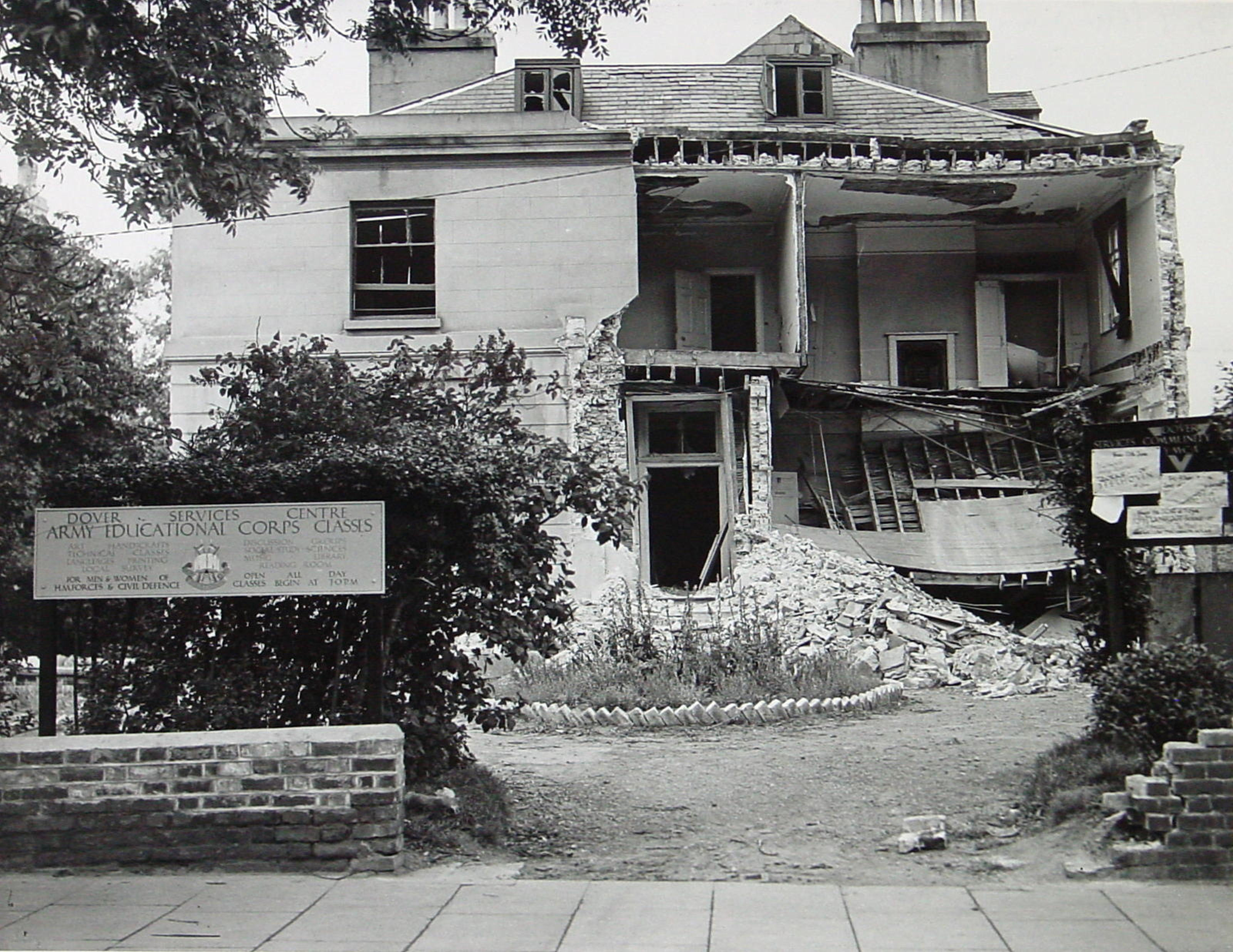 Dr Annie Brunyate’s home and centre of the early Dover women’s suffrage campaigns in Effingham Crescent following shell attacks in World War II. Dover Library