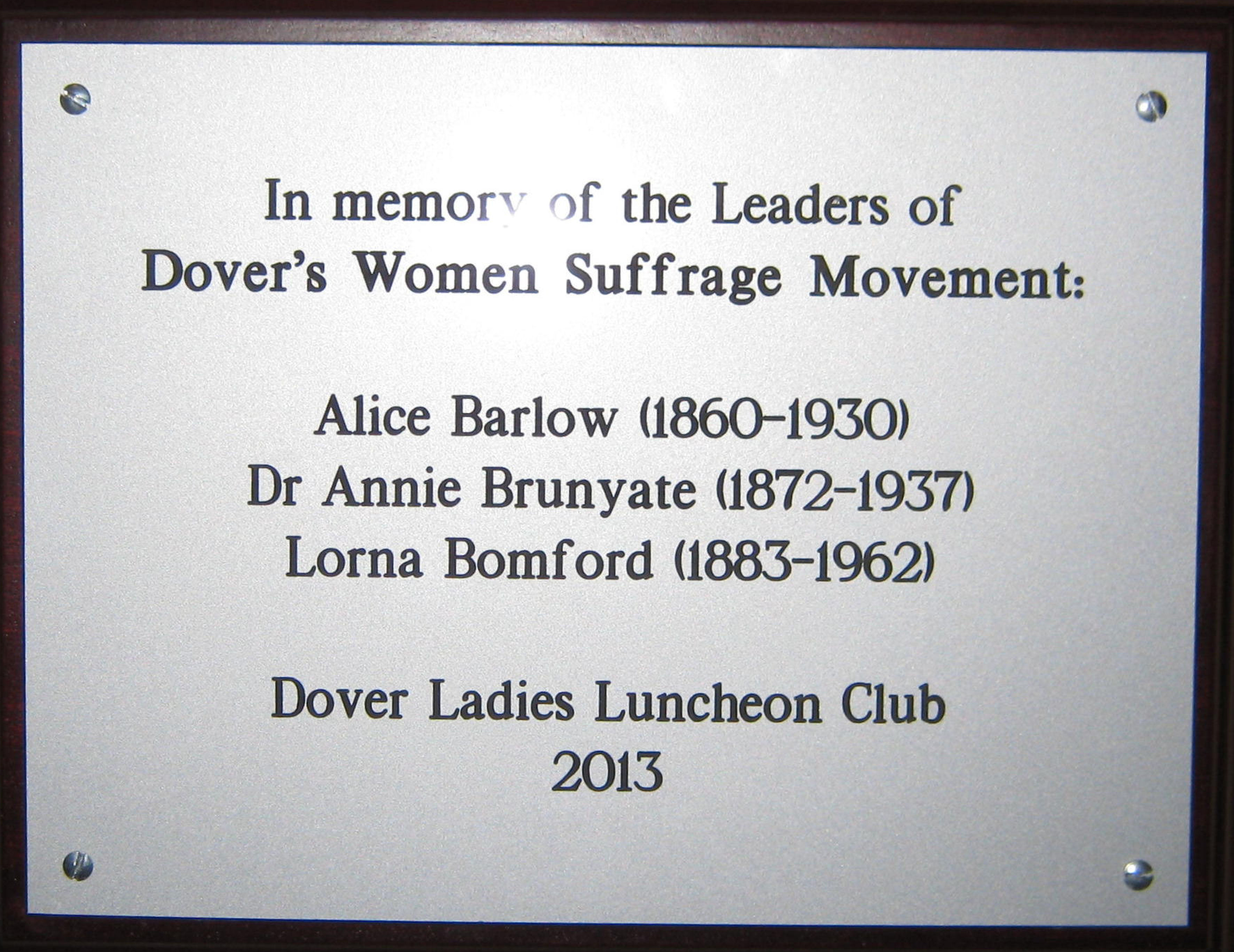 Following the author giving a talk on the above to the Dover Ladies Luncheon Club, member Patricia Biginell, publicly expressed the view there should be recognition given to these ladies. They had worked hard, against all the odds, to secure rights for women.