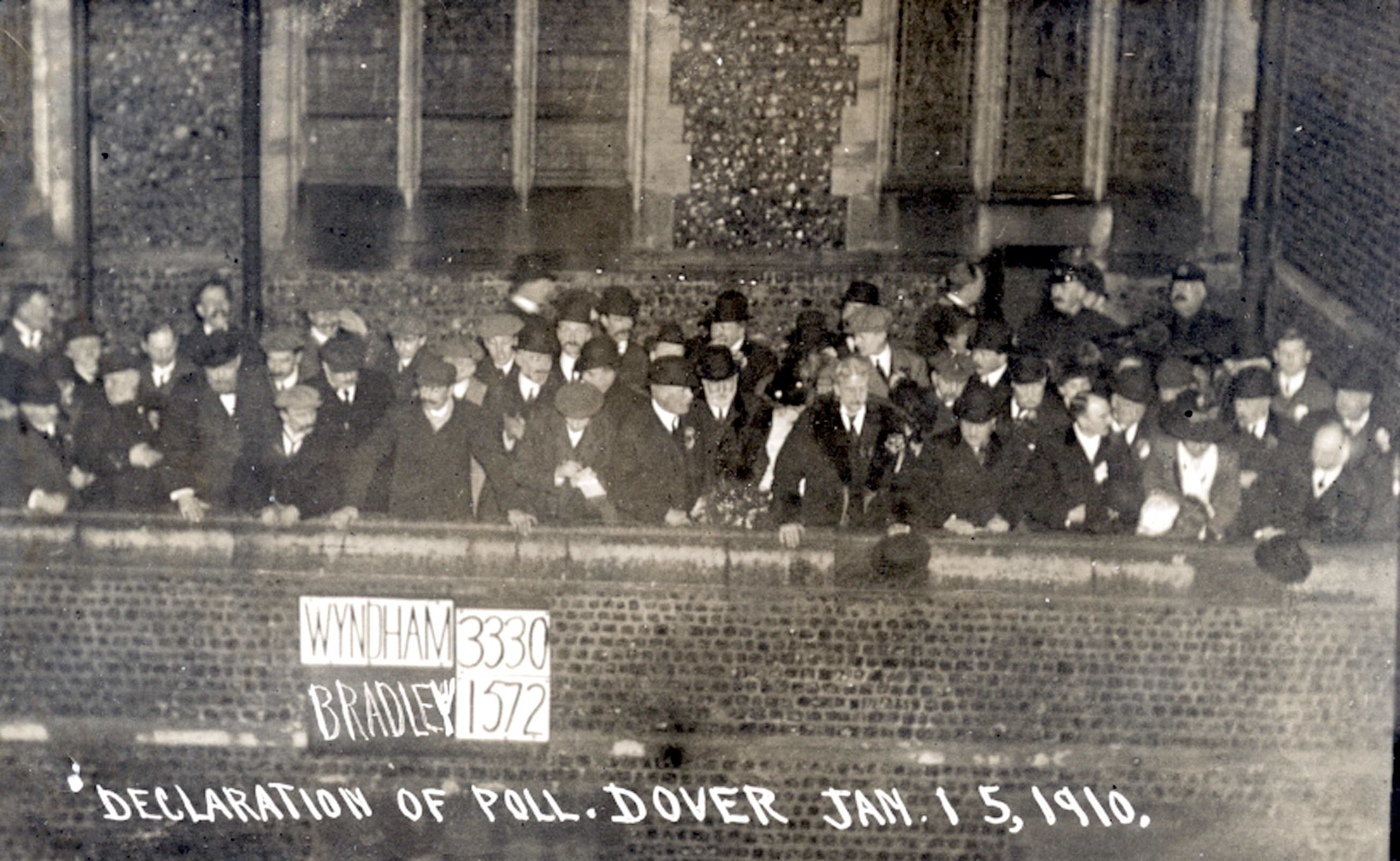 Following the Re-Distribution Act of 1885, Dover, then a Borough, the representation in Parliament was reduced from two to one MPs and the National Exchequer – now the Treasury – paid the elected representative a wage. In July 1889 Conservative, George Wyndham, stood unopposed and remained the Borough’s MP until his death in 1913. Nonetheless, there was a strong Liberal following in the town, headed by Montague Bradley and Arthur Harby, two local solicitors.