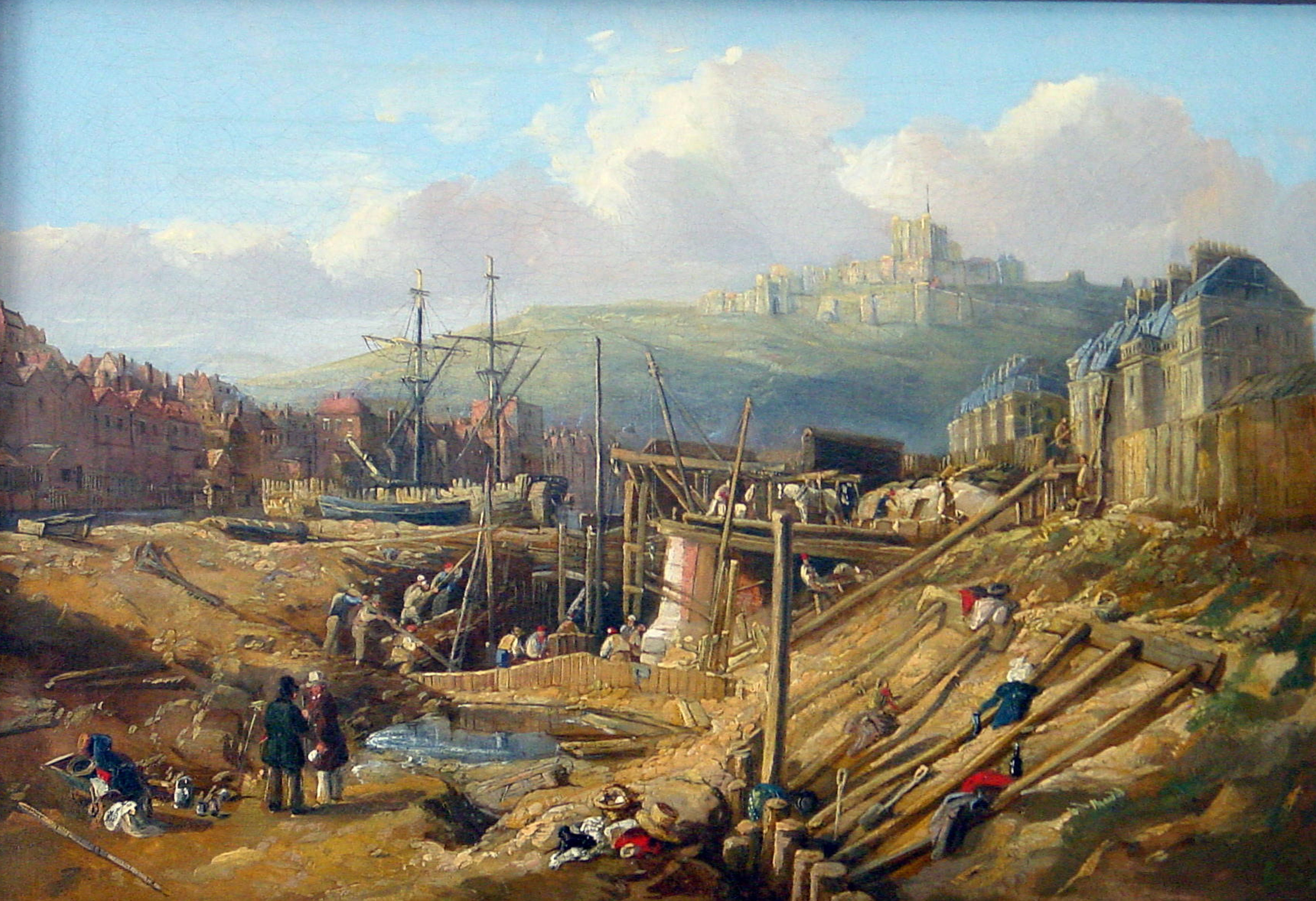 Following the introduction of steam-powered ships in the 1830s, the Harbour Commissioners recognise that unless they modernised Dover’s harbour cross Channel ship owners would go elsewhere, namely Folkestone. At the time, the harbour was at the west end of the bay and comprised of the Tidal Basin, the main entrance and exit from the sea and the inner harbour or Bason, as it was called at the time and the Great Pent.
