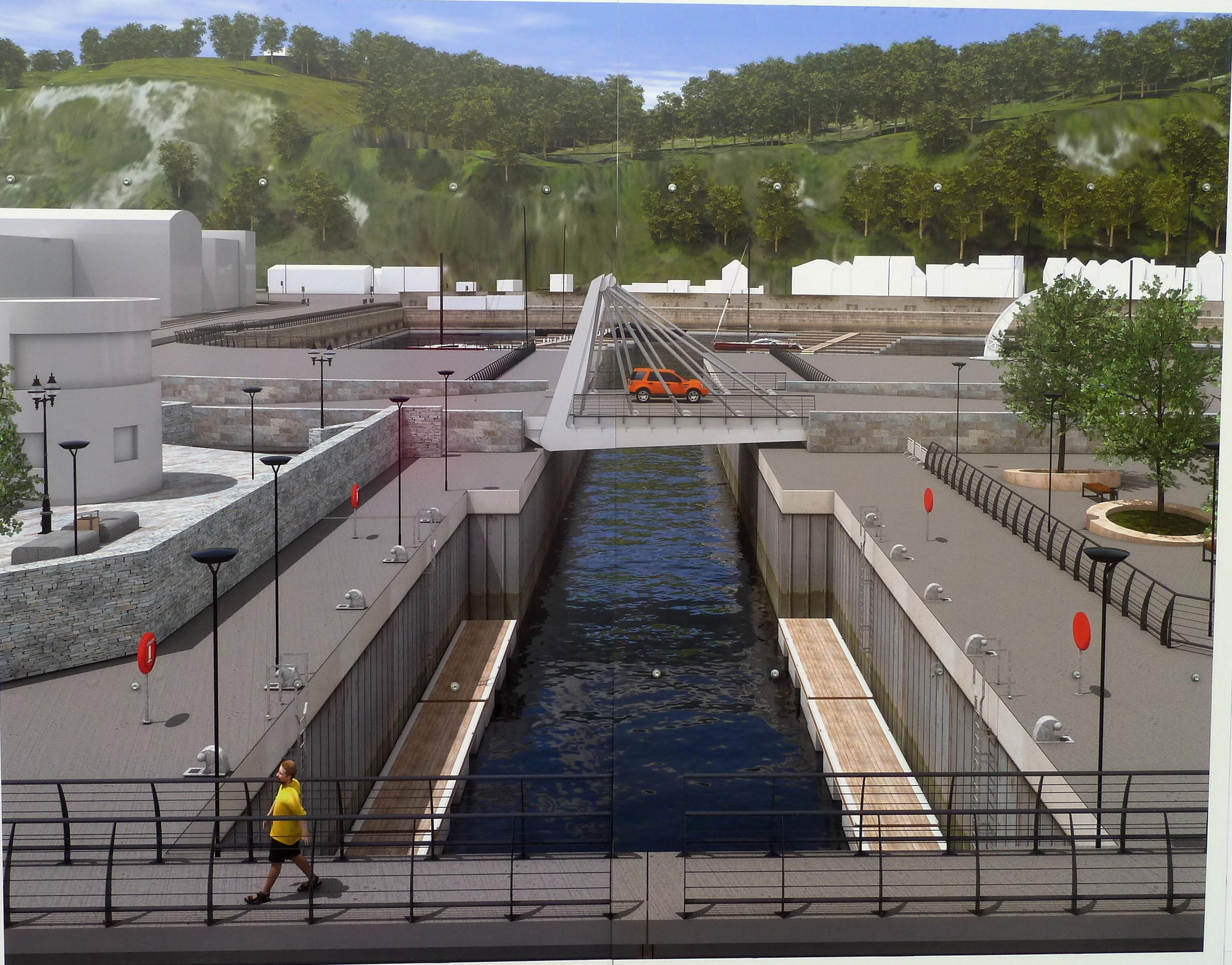 Cut through from Wellington Dock across the Seafront to the Sea proposal. Note there are no Lock Gates – DHB poster January 2016