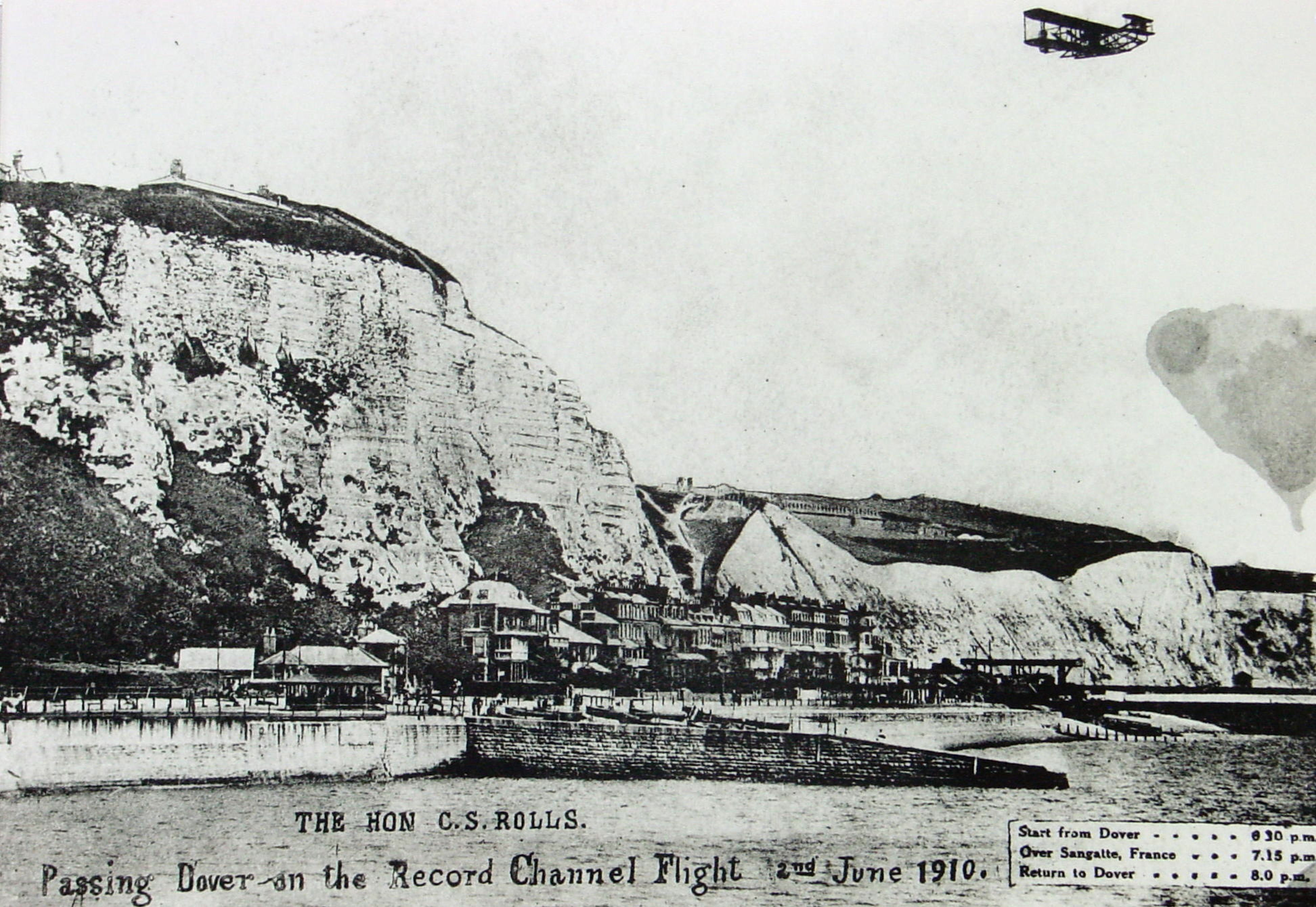 On his first visit to Dover, with this in mind, Charles decided to open an ‘aeroplane garage’ at Swingate, to the east of the Castle and the aerodrome he was to use. On 20 May 1910, a Charles Wright flying machine arrived at Dover and the word was out that Charles was to make the double crossing of the Channel! Trials subsequently took place, and on 2 June, crowds made their way up to Swingate aerodrome to watch. With everything to his satisfaction and ideal weather conditions Charles left Swingate at 18.30. He was over Sangatte, France, at 19.15 and back in Dover at 20.00. The journey had taken 95 minutes and he circled the Castle in triumph!