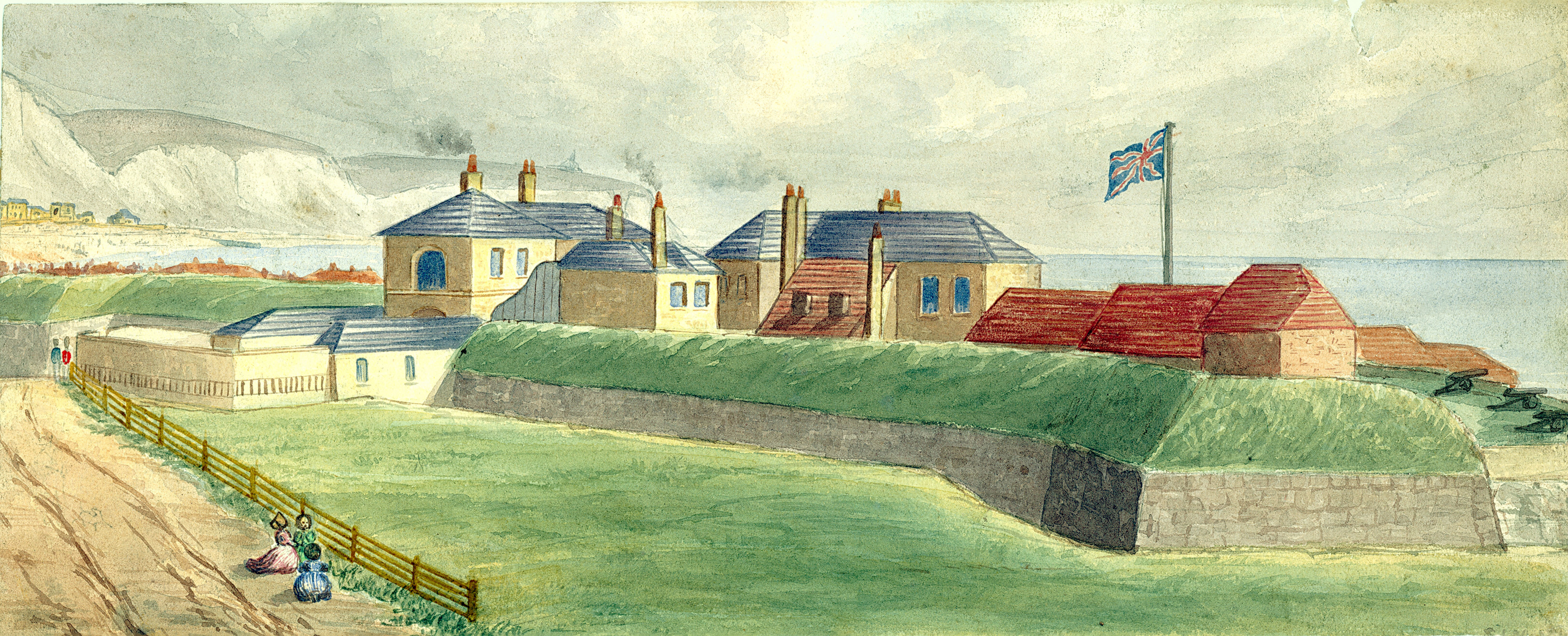 Up until the end of the 15th century Dover’s harbour was on the east side of the bay but had albut silted up. Around 1495, John Clarke, Master of the Maison Dieu sought Henry VII’s patronage to turn a small natural cove at Archcliffe Point, at the west side of the bay into a commodious harbour. This he did by building a strong bank out into the bay, and ‘cut an entrance through Archcliffe Point’. At the extreme end of the bank, he built two towers on which mooring rings were fixed.