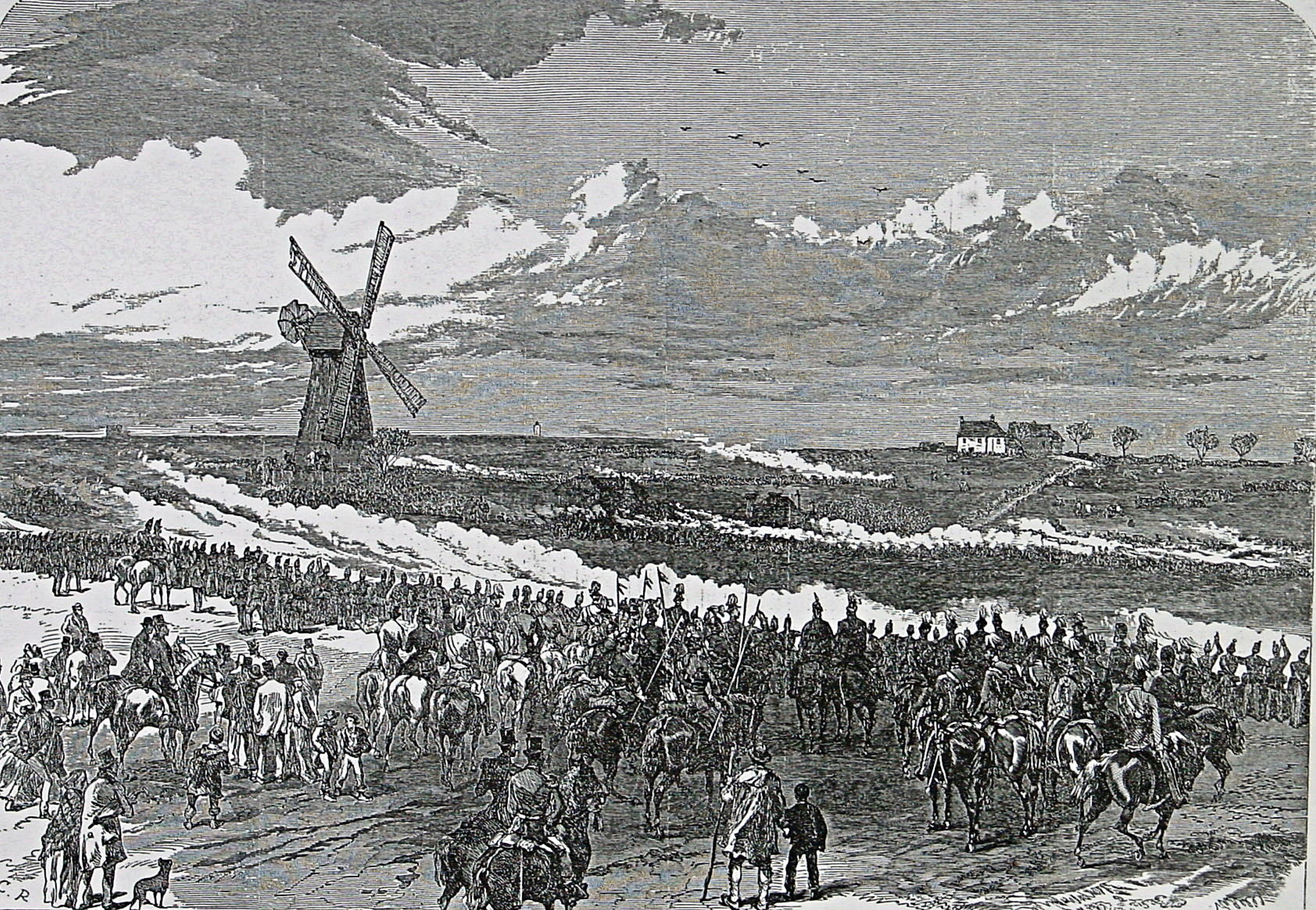 By mid morning, the weather had moderated and the heavy rain ceased. The Commander-in-Chief of the British Forces (1856-1895) Prince George the 2nd Duke of Cambridge (1819-1904) and cousin to Queen Victoria (1837-1901) was in charge of the Review and he arrived. With him were Prince Arthur, Duke of Connaught (1850-1942), Francis, Duke of Teck (1837-1900) and Earl Granville the Lord Warden (1866-1891). They had ridden from Walmer Castle where they had been staying. The Duke of Cambridge was told of the catastrophe and was well aware of the weather conditions but commanded that the Review should go ahead as planned. He was somewhat taken aback by the Volunteers, who appeared to be in disarray and he issued the order to ‘Sound the Assembly at once.’ The wet and bedraggled Volunteers assembled.