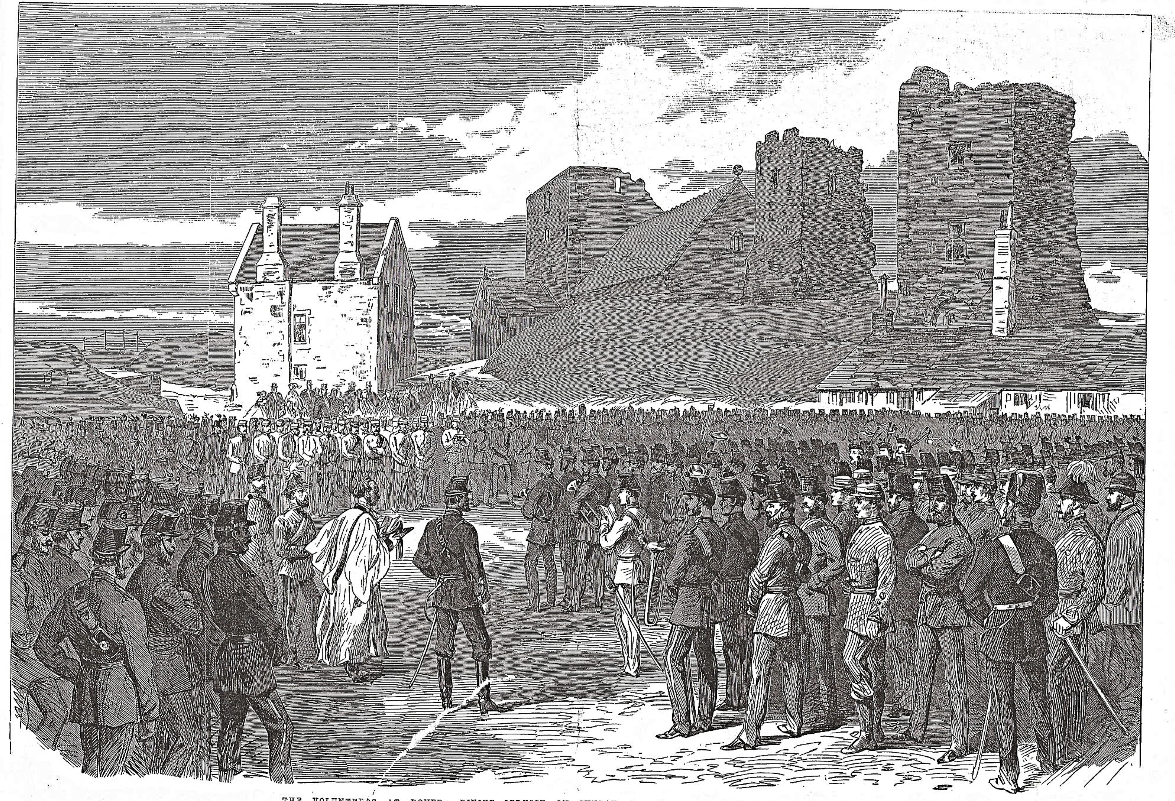 As the Volunteers were getting to their positions, the weather took yet another turn for the worse and eventually, due to the increasing strong winds, heavy rain and sleet, the exercise was abandoned. At sea, the inclement weather was also a cause for concern. Nonetheless, there is a contemporary drawing of the two turret-ships, Royal Sovereign and Scorpion, actively engaged in firing at the Castle and being met with return fire. Although the weather had ensured that the weekend manoeuvres did not go as planned the events that did take place were memorable than the Reviews that went ahead as planned.