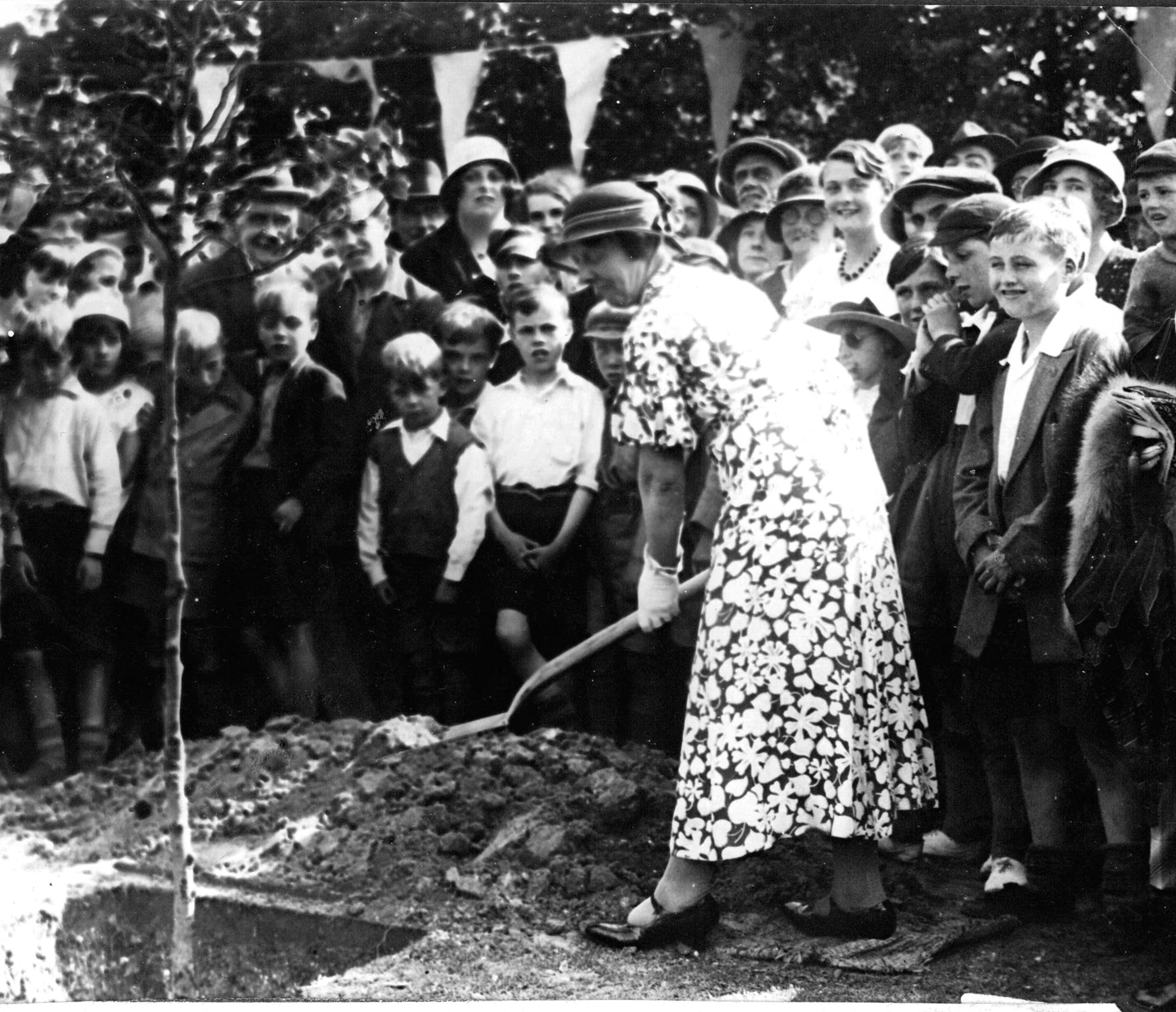 Connaught Park Golden Jubilee 12.07.1933 Mayoress Mrs Morecroft planting a commeration tree. Dover Museum