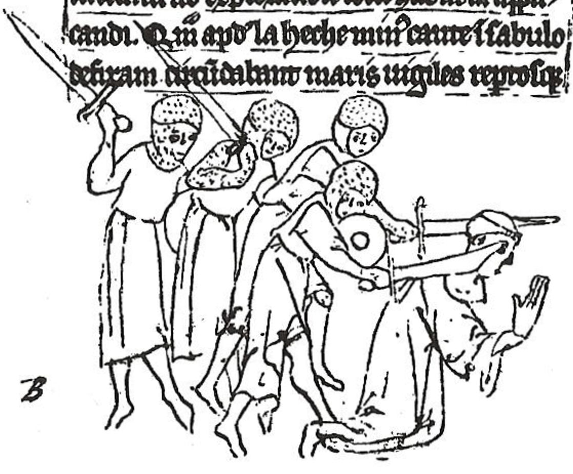 Quotes taken from the “Life and Passion of Thomas de la Hale, Monk of Dover, slain by the French” written in 1377 by John of Tynemouth, which includes the sketch of his death.