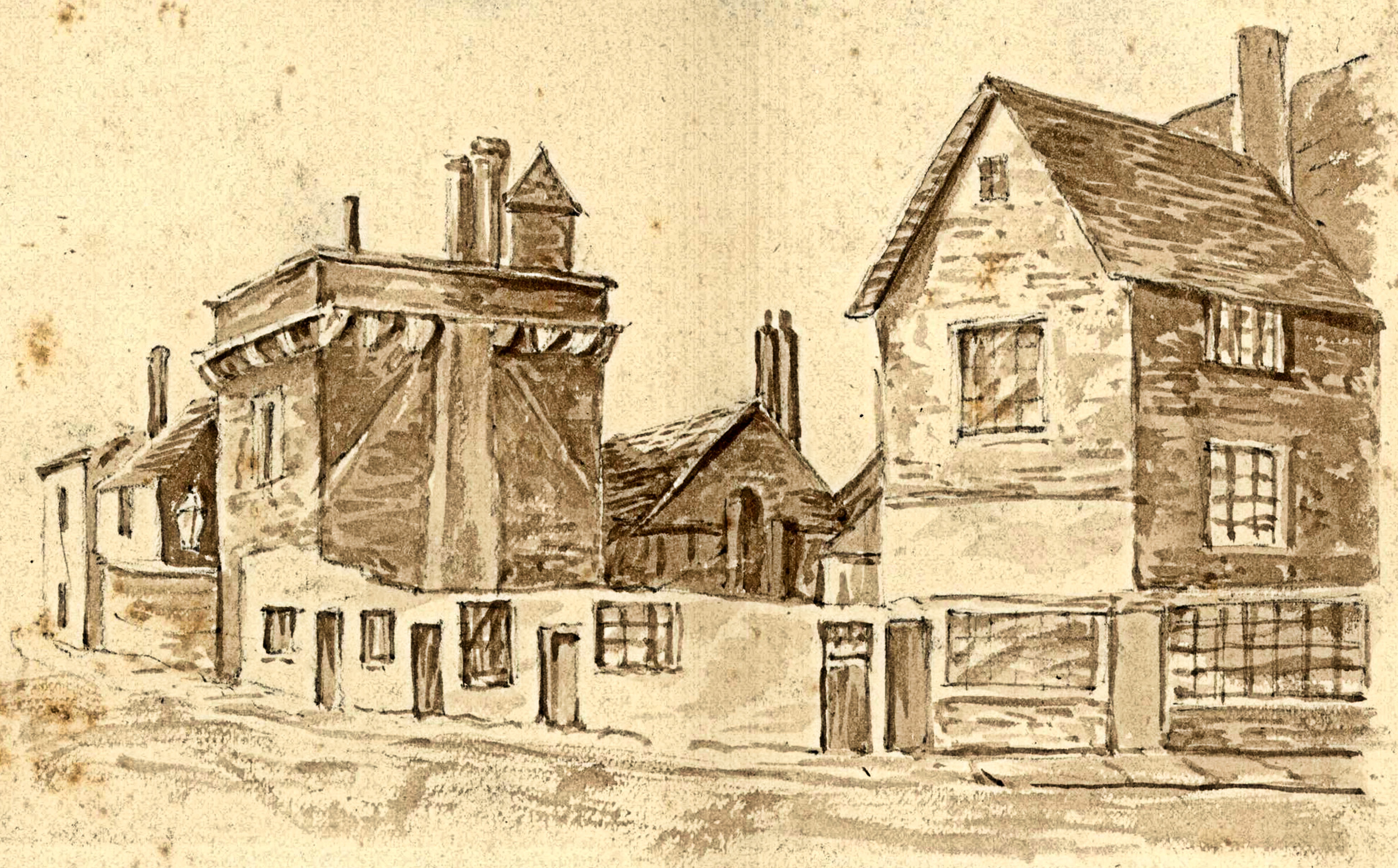 At the beginning of the 19th century, Bench Street was described as a lane so narrow that when the coaches turned at the top end from Snargate Street the horse had to put their heads into the window of the house at the corner of Townwall Street! The main obstacle was the large St Nicholas Tower, probably a defensive structure that was 40-foot (12 metres) high with walls on each side that were 4-feet (1.2 metres) thick and about 22-feet (6.7 metres) long.