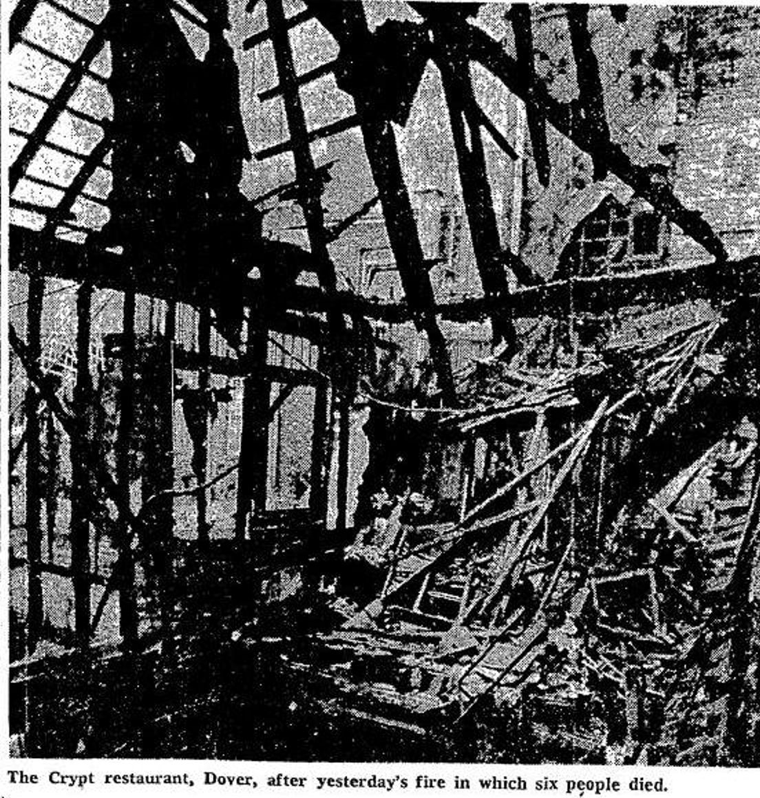 Tragedy struck in the early morning of 27 March 1977. At 02.49hrs Peter Waters, who was walking his dog, called the fire brigade as he had seen smoke coming from the Crypt restaurant. The first fire appliance arrived at 02.55 and back up was requested – the building was alight. People leaning out of windows on the upper floors were rescued and nine people were carried out of the burning building, two of them dead.