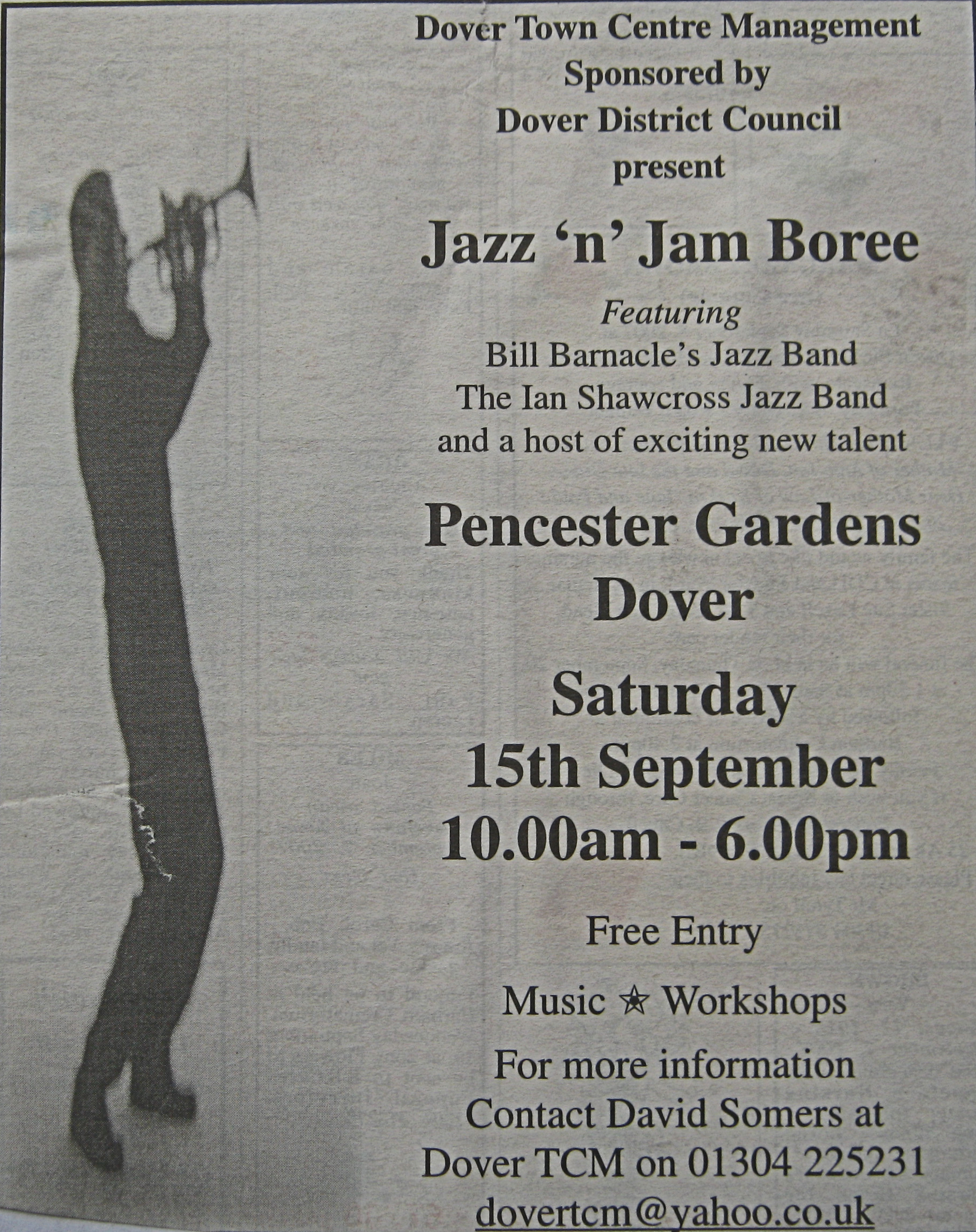 Away from the Louis, a Jazz and Jam Boree event was organised by Dover Town Centre Manager, David Somers, on 15 September 2007. Playing that day were two of the country’s leading Jazz bands, Bill Barnacle and his Jazz Band and Ian Shawcross with his band. The event, on Pencester Gardens, lasted eight hours and was a brilliant success. In 2014, the South Foreland Rotary Club raised £1,500 for the RNLI lifeboat with a jazz evening provided by the Just Friends Swing Sextet at the Cruise terminal at Western Docks.