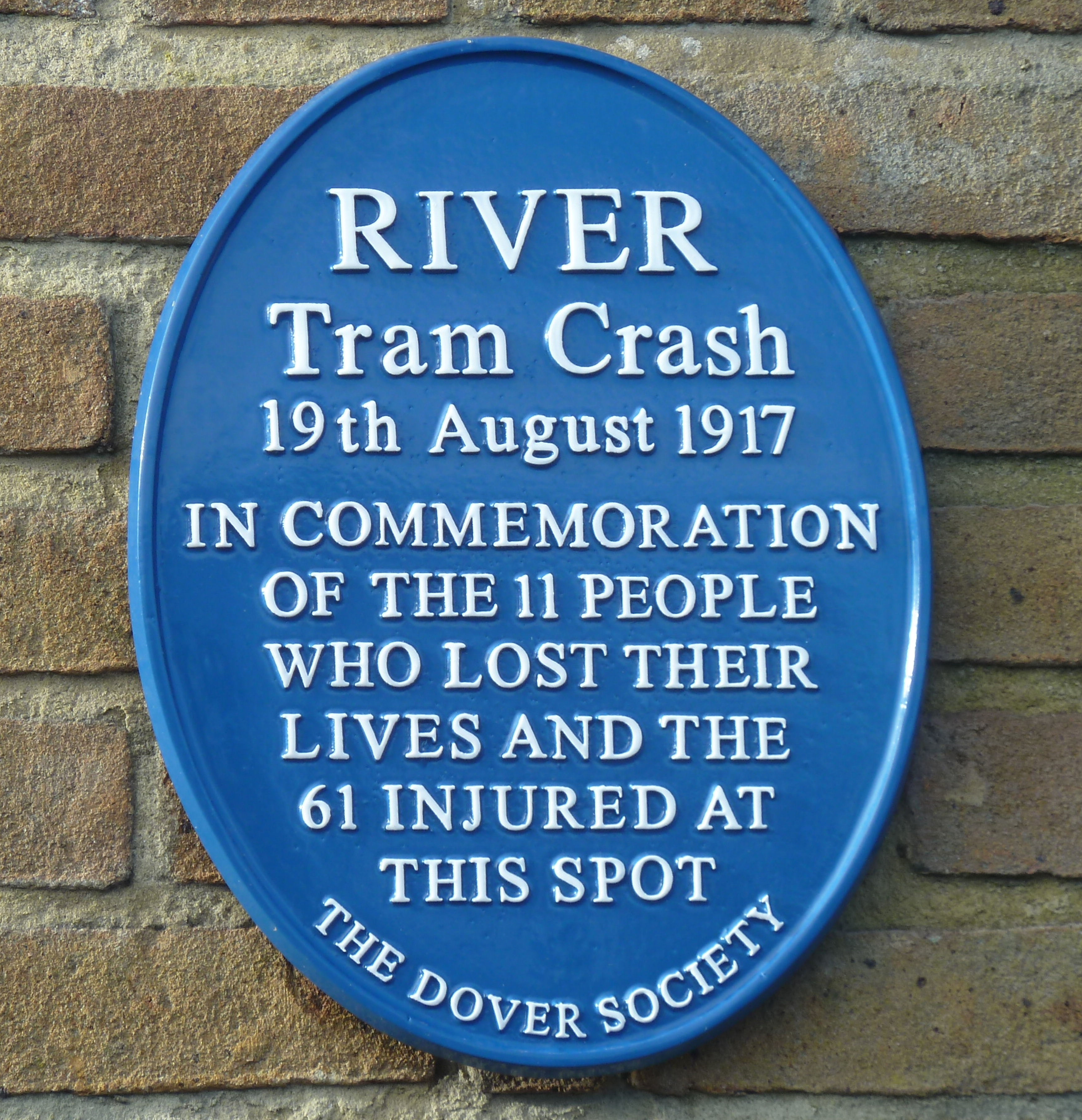 On Saturday 19 August 2017 the Dover Society presented a Centenary Memorial Exhibition honouring those who died, were injured or involved in the Crabble Tram Accident. As recounted above, this took place on Crabble Road when the out of control tram hit the northern parapet of the River Dour Bridge – there is a Dover Society Plaque in commemoration of those that died or were injured.