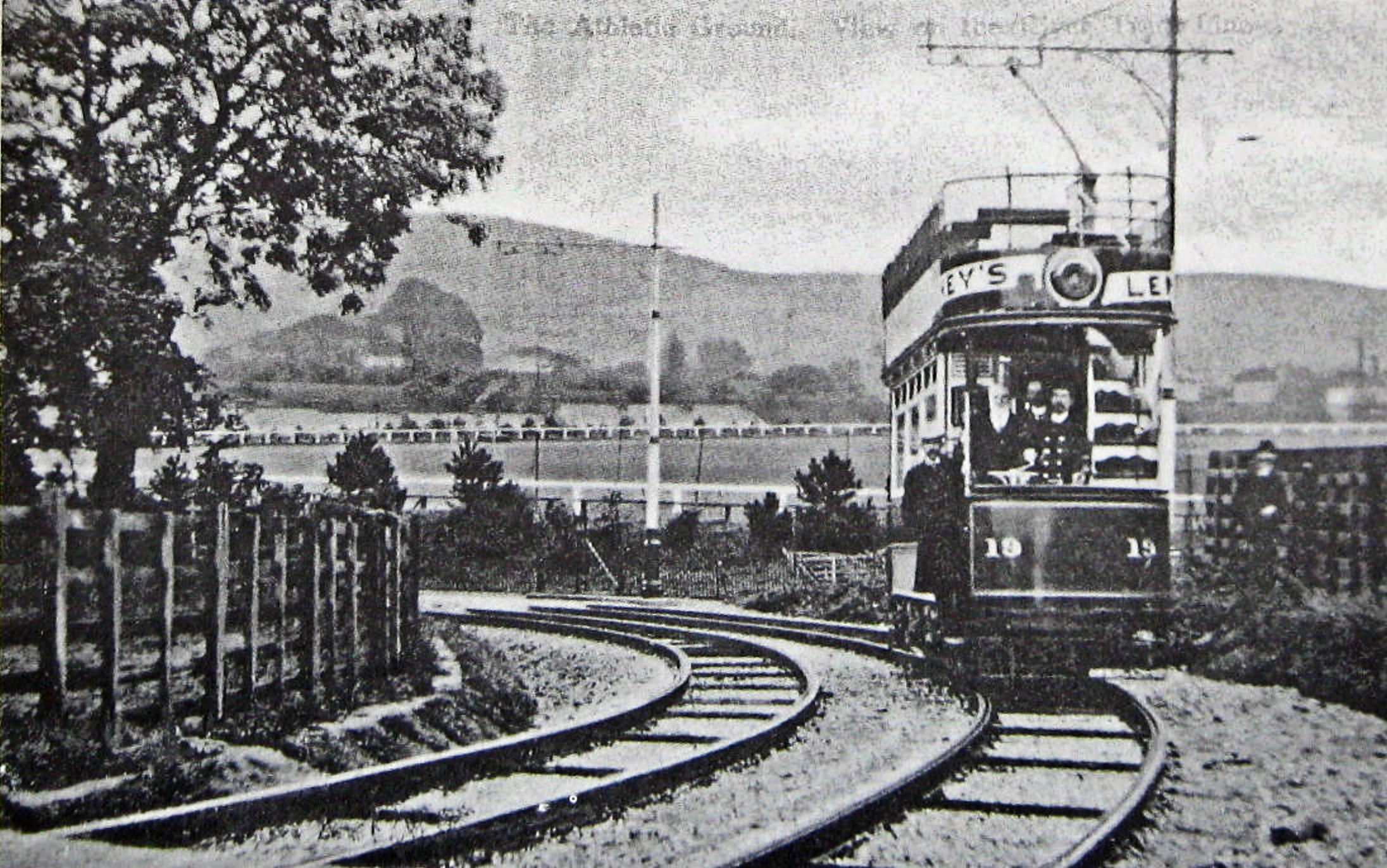 Because of the terrain, after the railway bridge it was found to be easier to erect the poles carrying the overhead cables on the ‘wrong-side’ of the road. This caused the trolley-booms to trail across the top of the cars. From the tram shed at the bottom of Crabble Hill, on London Road, to the 90º turn for River the track was on wood block. At the start of the turning into Crabble Road, the track was on a sett paving that continued until it reached the north gate of the Athletic Ground. From there were open fields until the village of River was reached.