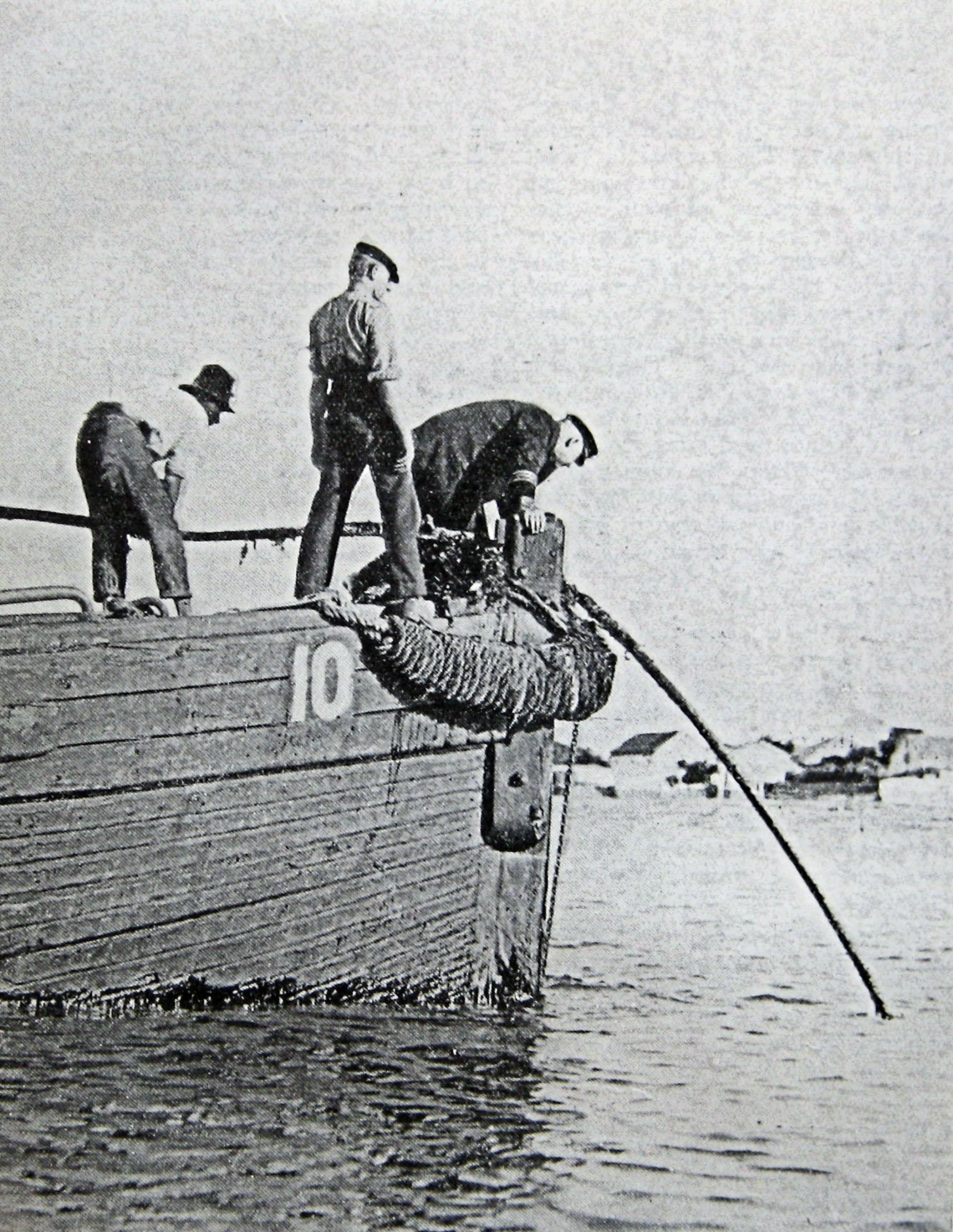 Dropping a marker buoy to show the start of a line that is being examined for a fault. Alan Sencicle Collection