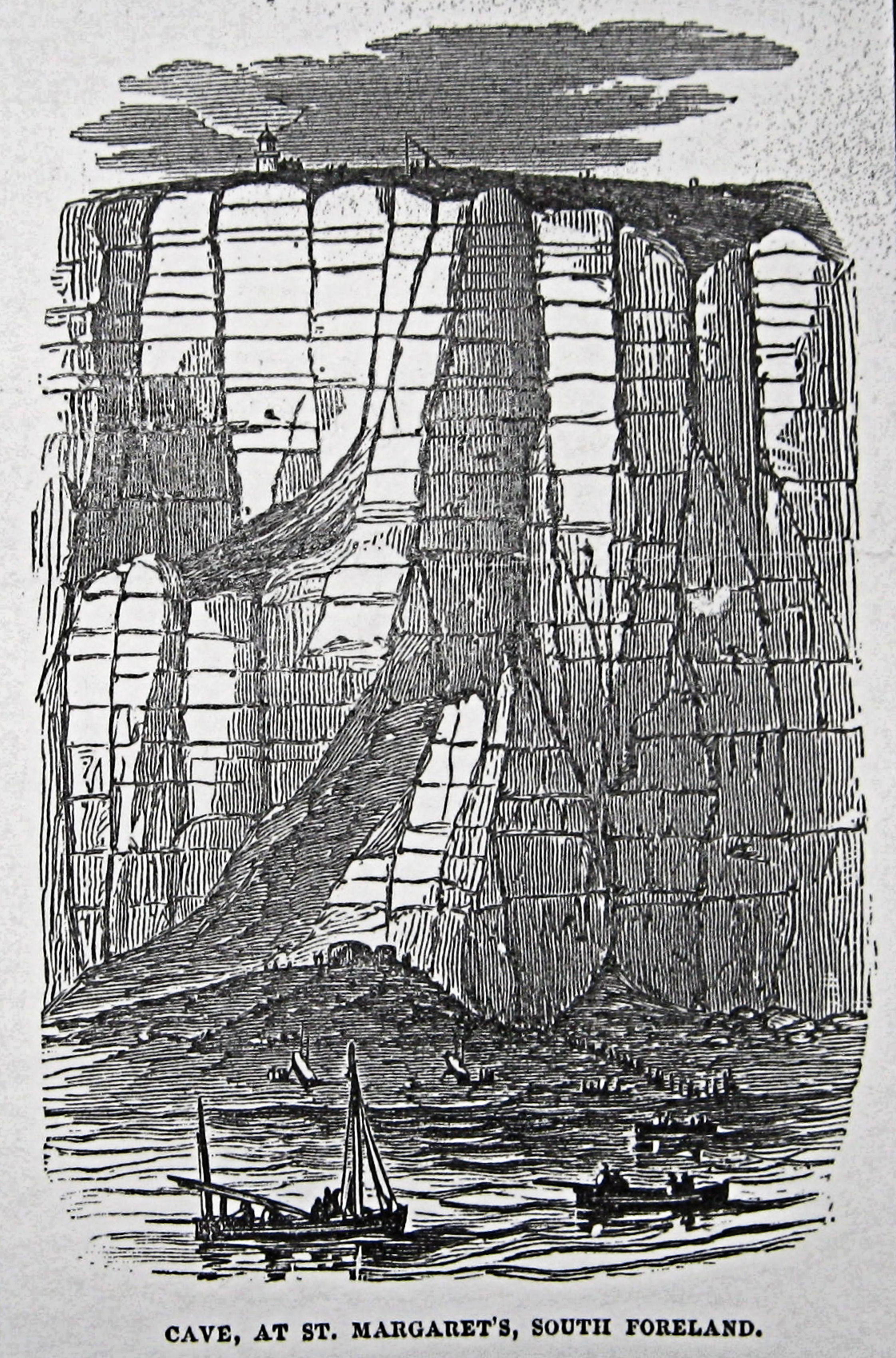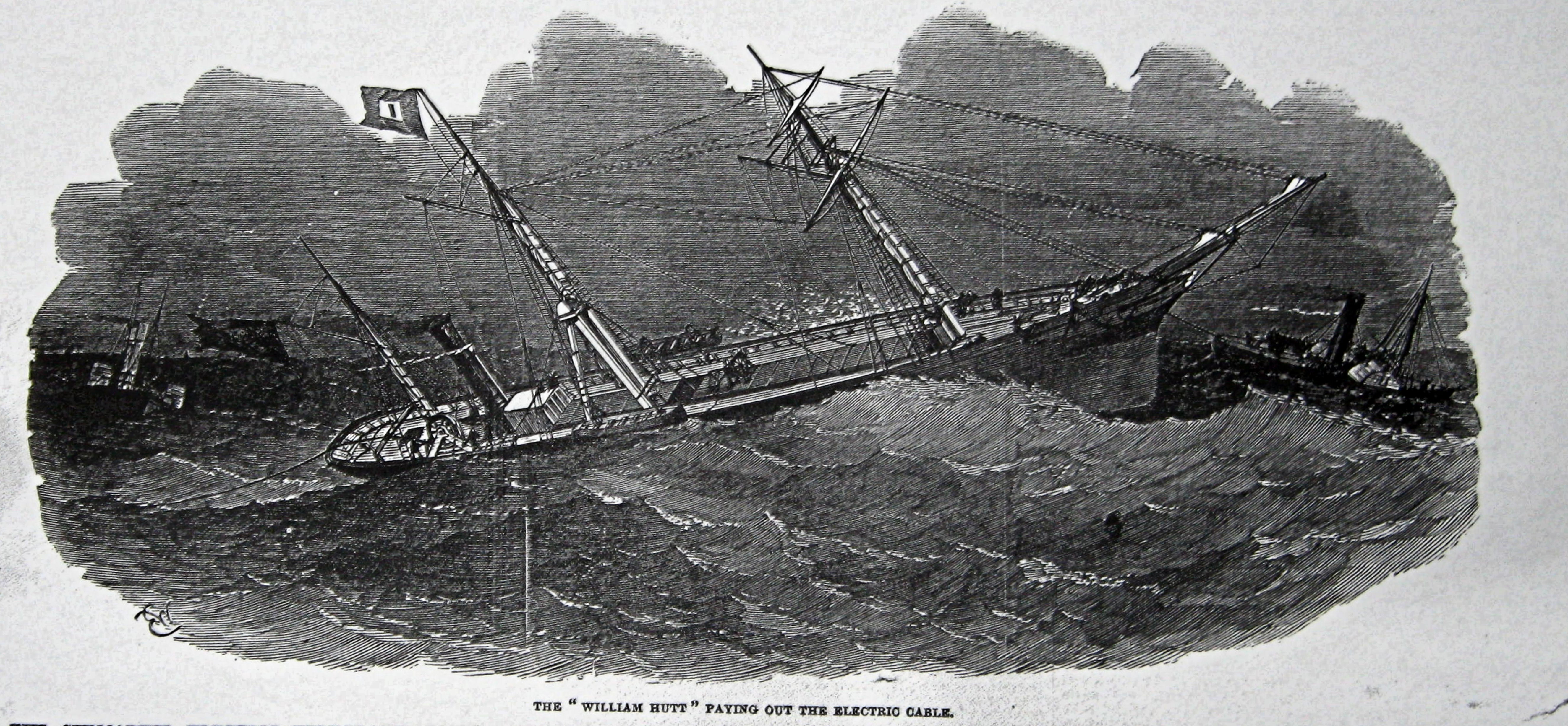 Blazer laying the first submarine cable. Although the operation started from South Foreland, illustrators of the time showed Shakespeare Cliff in the background. Illustrated London News 01.10.1851
