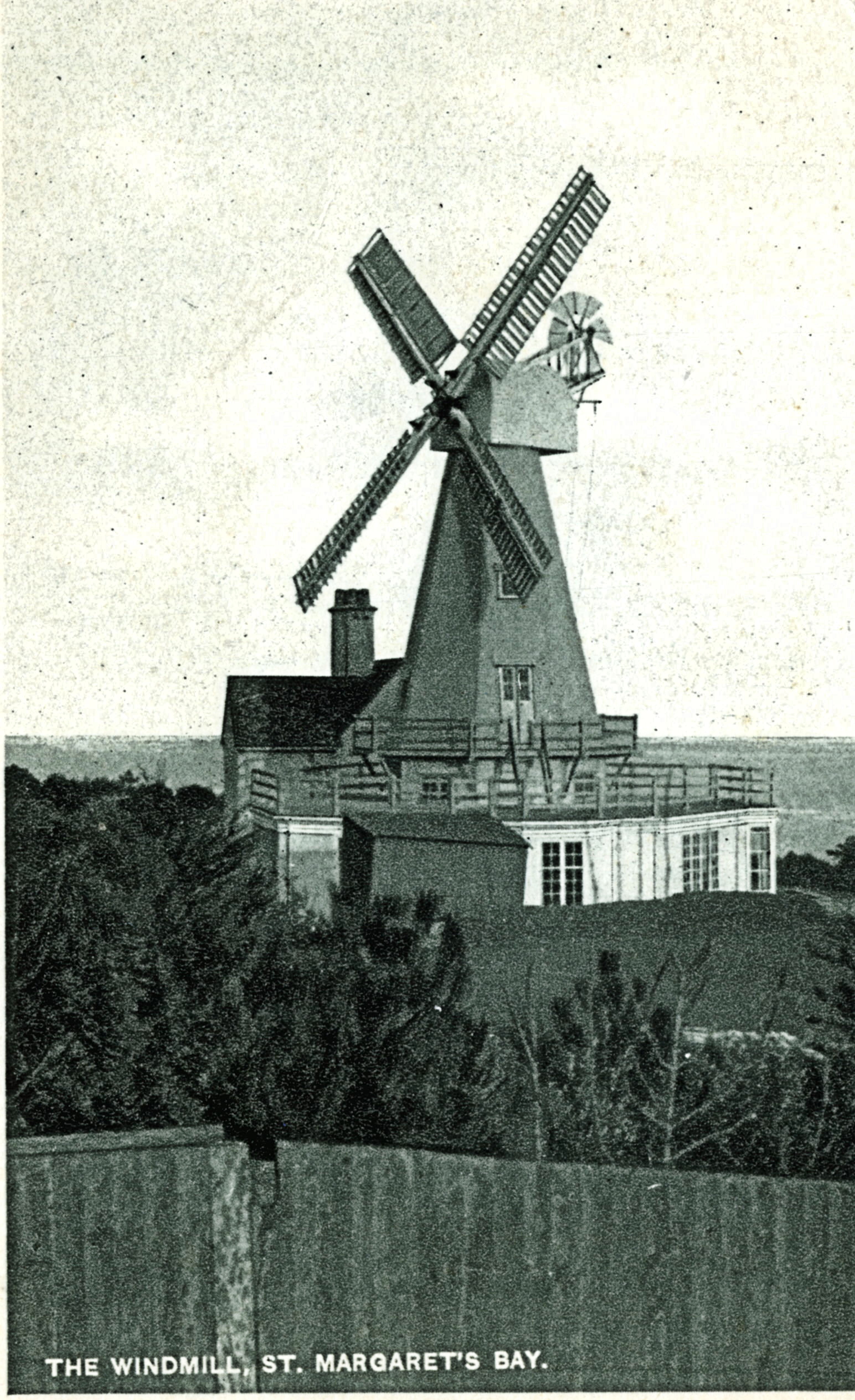 It was the lower lighthouse that Sir William bought and this was decommissioned in 1904, following which the building was turned into a private residence. Shortly after purchasing the old lighthouse, Sir William had the house built nearby for his sister, Mrs Annie Scott, and then decided to add a windmill to ‘give rural charm’ to the property. He combed Kent for a mill that would serve his purpose and eventually did buy one but it was unsuitable to be moved. Finally, his architect suggested building a false windmill and this was agreed.