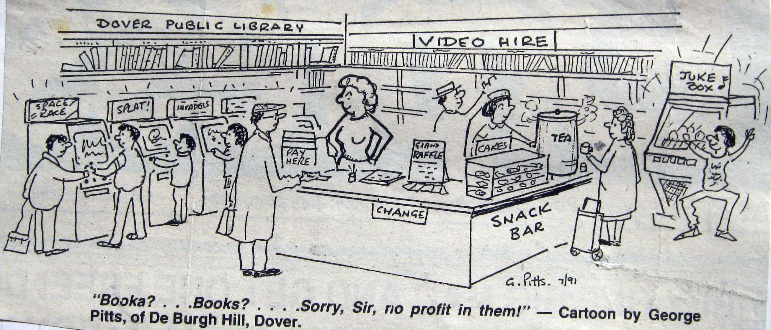 Group librarian, Tony Ricketts suddenly died in August 1988 and Gavin Wright was appointed. He held a post-degree diploma in Librarianship and had worked at Dover library for five years. November 1988 saw the 25th anniversary of the opening of the junior library and it was reported that during that time 1,500,000 books had been borrowed. Over 2,000 children from 14 Dover schools attended the celebrations. Two years later, schoolchildren along with old age pensioners lost the ‘no fines’ concession for overdue books but it was agreed that librarians could use their discretion.