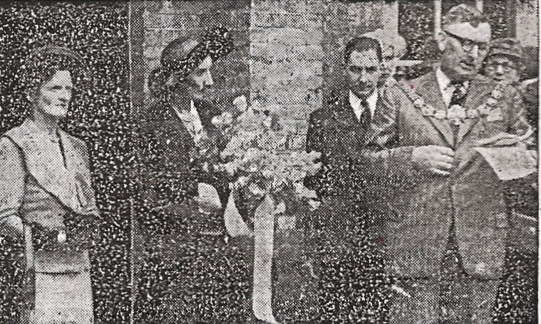 Mayor Bill Fish welcomes Lady Cornwallis before handing her the silver key to unlock the library door at Maison Dieu House. Dover Express 13.06.1952