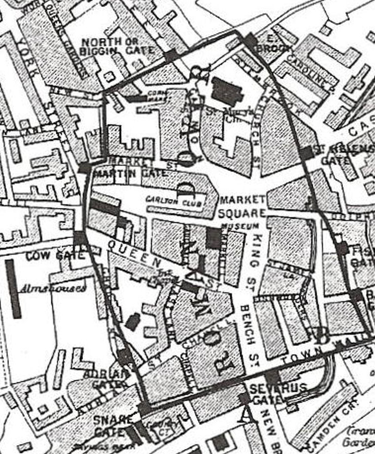 Map showing York Street, Princes Street & Queen Street area before the building of the York Street by-pass