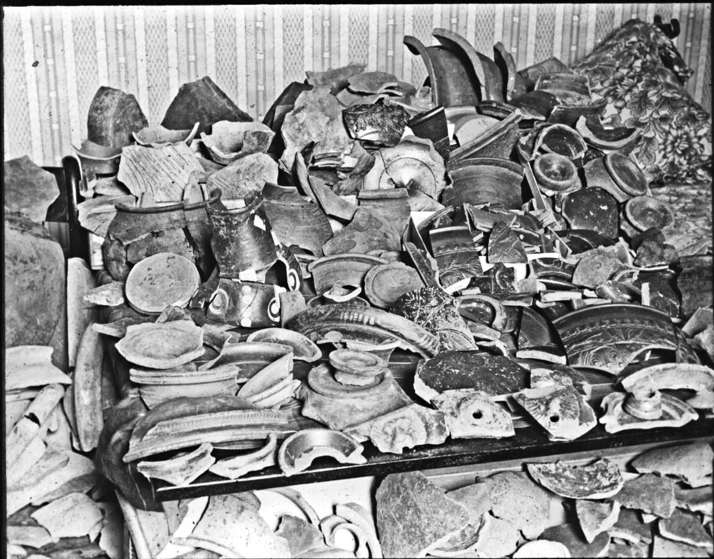 ‘Rubbish’ found while excavating for Lloyds Bank on the north side of Market Square in 1908. Identified by Eugene Amos – who took the photograph – of archaeological significance. Dover Museum