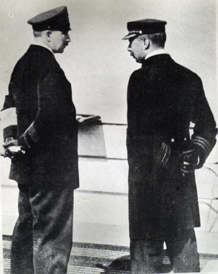 Dover Harbour Master, Captain John Iron (right) talking to Kaiser Wilhelm II on the König Albert 15.12.1903. David Iron Collection