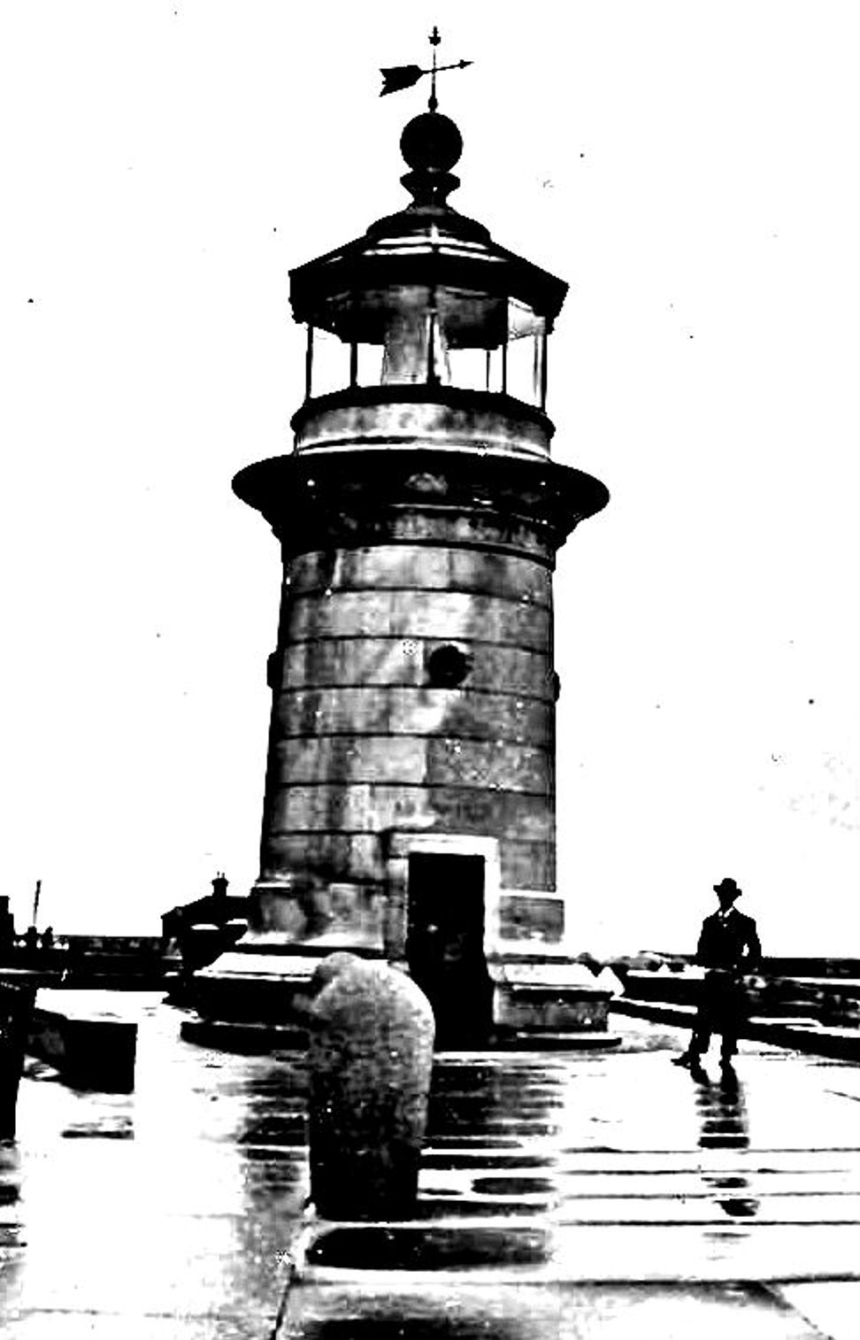 The major and most expensive change was at the Head of the Prince of Wales Pier. Although the original design remained the same, the Head was straightened and carried forward making the now straight Pier 2,910-feet long. The parapets that had been built on the solid section were removed with only those around the Head remaining. On the Head, approached by a flight of granite steps, was the lighthouse. Built of granite, it was topped with a cylindrical lantern room on which was a metal weather vane. The road and footpaths were to be commensurate with the iron viaduct of the Pier. The Admiralty Pier extension was to be 2,000-feet long, paid for by the Admiralty and to be use for Admiralty purposes. For some time later, it was agreed that the remainder of the proposed Commercial Harbour works were to go ahead but other changes precluded them reaching a conclusion and these included leaving the the dangerous Mole Head rocks as they were.