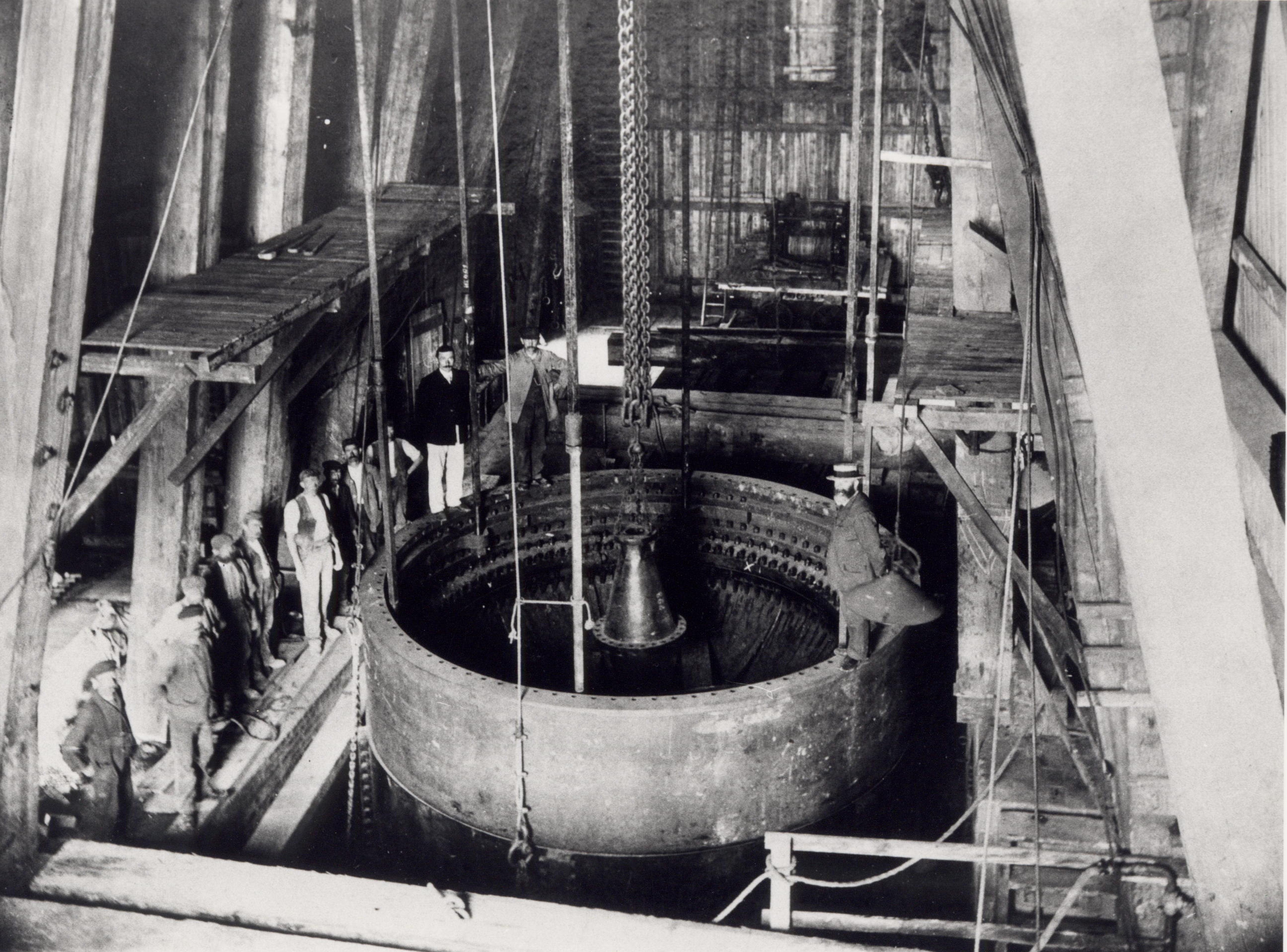 Costing £7,000 for the machinery, the Kind-Chaldron method was introduced into the Simpson shaft in July 1902 and the Brady shaft in September. At the time of the introduction into the Simpson shaft the water was a 1,000-feet deep and during the operations the shaft was widened to 18-feet in diameter. The operations were undertaken using a false bottom so that a workable section could be dealt with. As the water was pumped out of the section cast-iron tubes were bolted into position and then hydraulic applied cement was used as infilling to keep that section of the shaft dry. The cast-iron tubes were brought by freighters from Germany and unloaded in the Wellington Dock. From there they were carried in small barges towed by a tug to the Colliery landing stage and then hauled onto an inclined railway to the shafts. The Kind-Chaldron method was estimated to cost the Corporation £75,000 and to help finance it they invited every creditor to surrender their charge and take debentures to an equal amount.