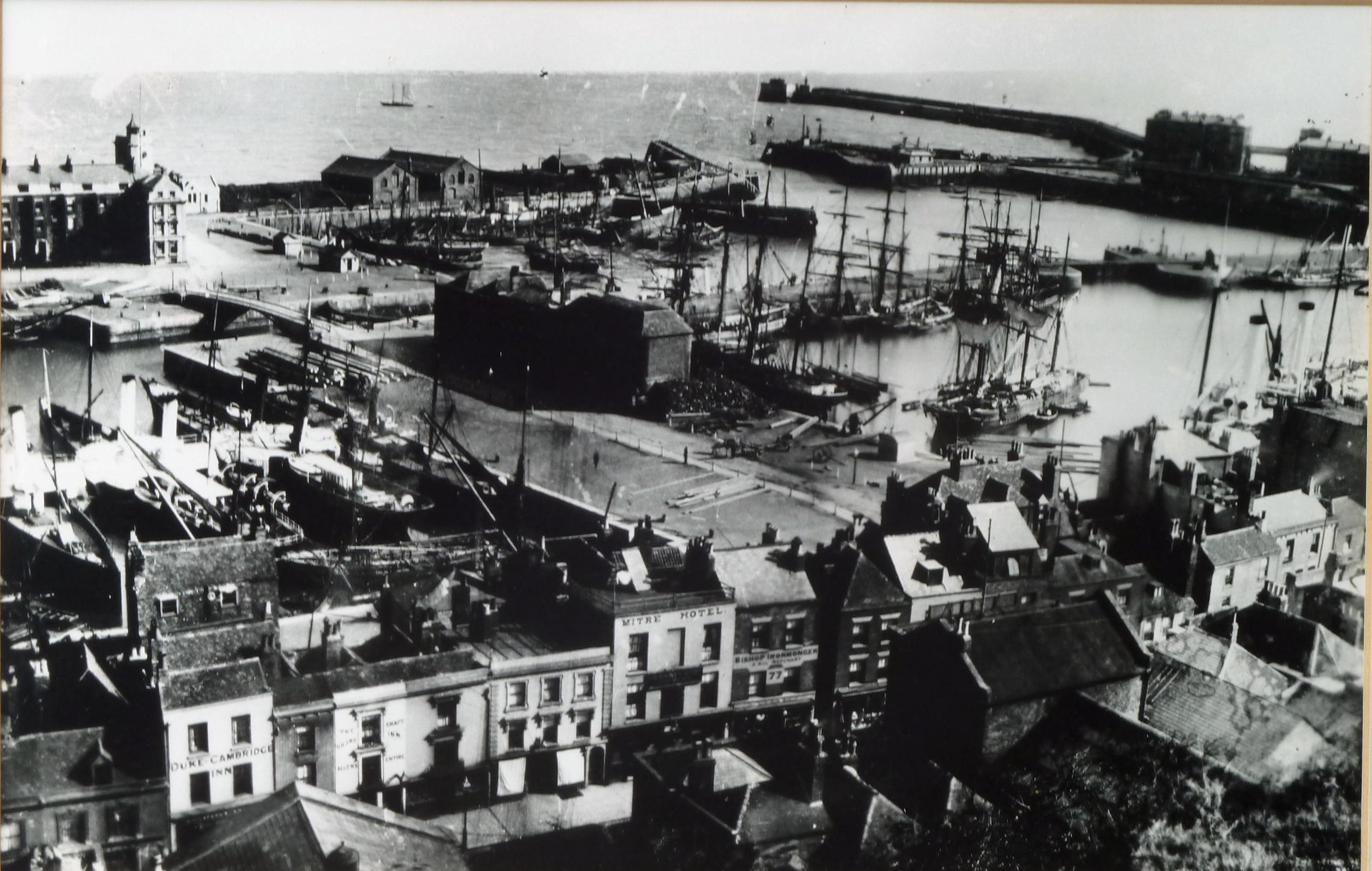 Dover Harbour 14 July 1903 Prince of Wales Pier. To the right is the Admiralty Pier. Wellington Dock nearest the camera with Waterloo Crescent and Esplanade. Nick Catford