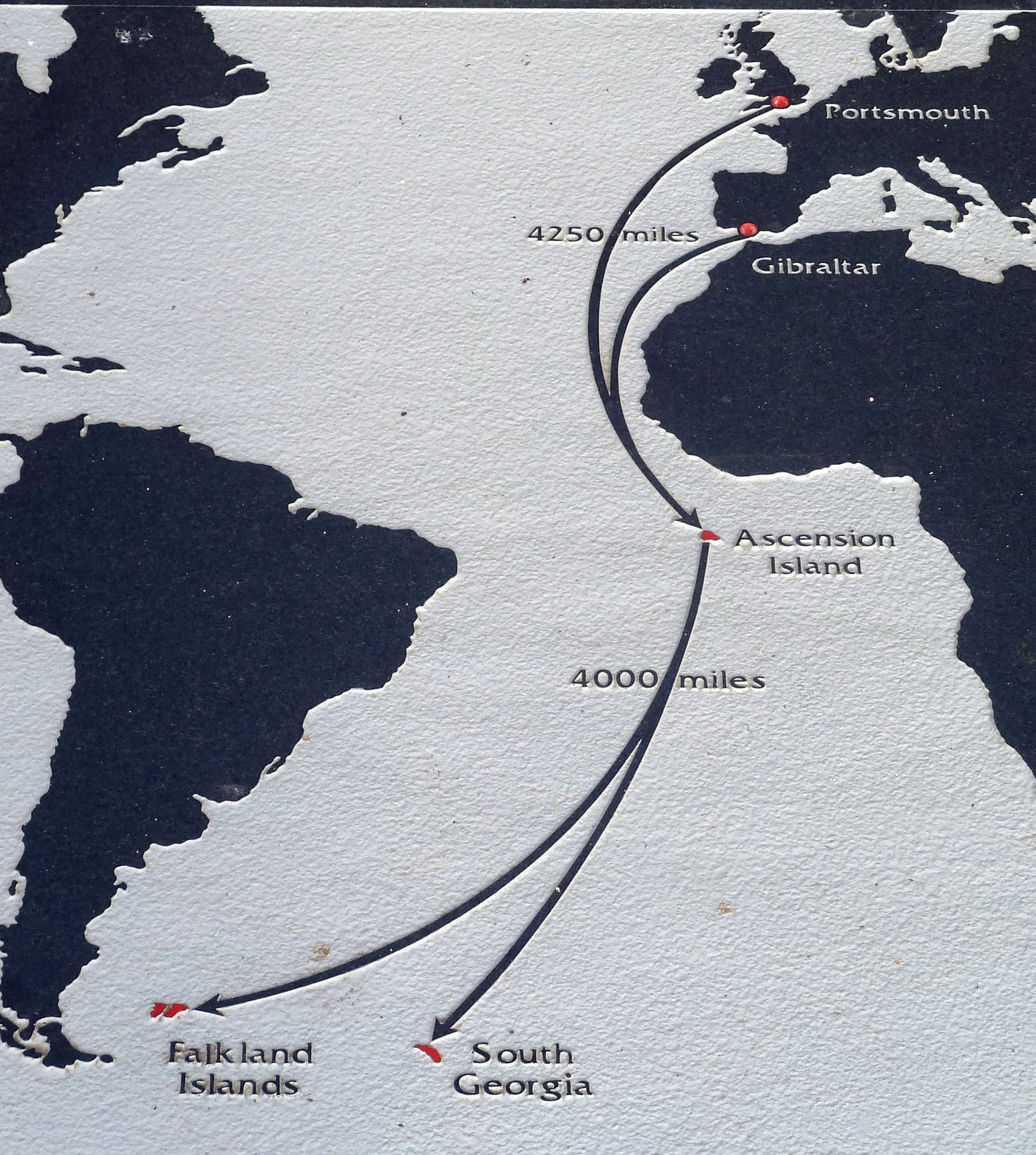 The route of the British Task Force to the Falkland Islands and South Georgia 1982. National Memorial Arboretum Staffordshire
