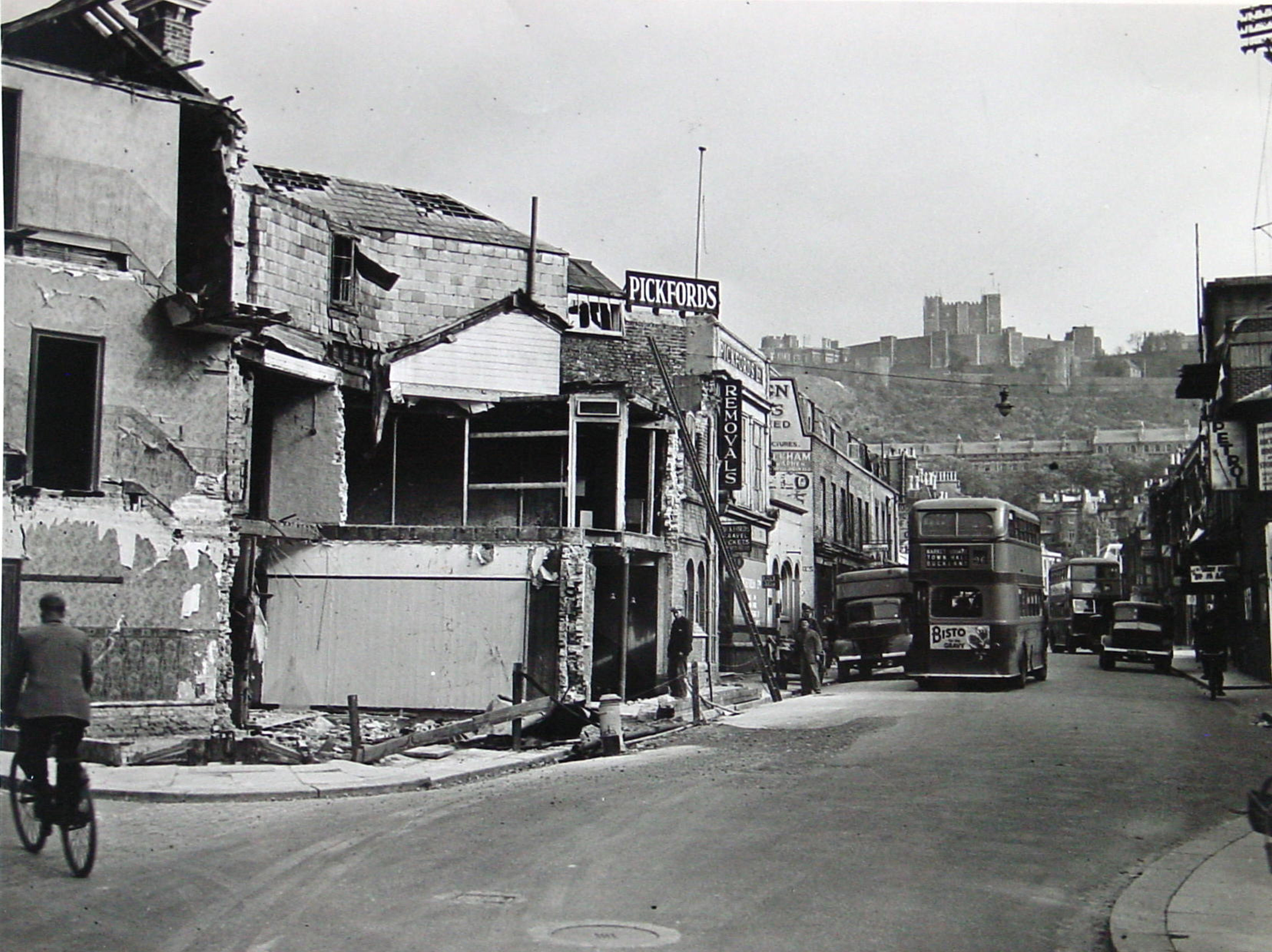 Castle Street following the last shell to hit and cause material damage on Dover. This was on Tuesday 26 September 1944. Kent Messenger. Dover Library