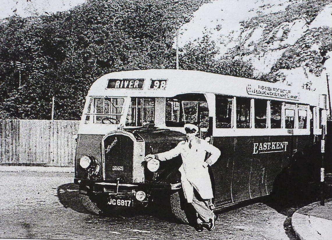 The conductor on that service was Joe Harman, later a Dover historian, and he and Vic walked back to the Buckland tram shed. There, Joe telephoned the Electricity Works to cut the electricity off for the last time to Dover’s tramway system. Over the following days the old open-top cars were run out to the track at River and set on fire while the others were sold by contract. One of the former tram staff that were offered jobs by EKRCC was Joe Harman who was rapidly promoted to bus driver and given training as an engineer. Another was Alexander Vassey, who had been a Dover tram driver for years and as soon as his sons, Albert, Alex junior, Alfred and Arthur, were old enough they joined him. They were all transferred to EKRCC and were later joined by their younger brother Richard!