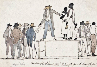 Cartoon of a Slave Market dated 4 March 1833 with the legend ‘The Land of the Free and the Home of the Brave’. The Webster-Ashburton Treaty of 1842 agreed to abolish slave markets within their territories. Library & Archives of Canada