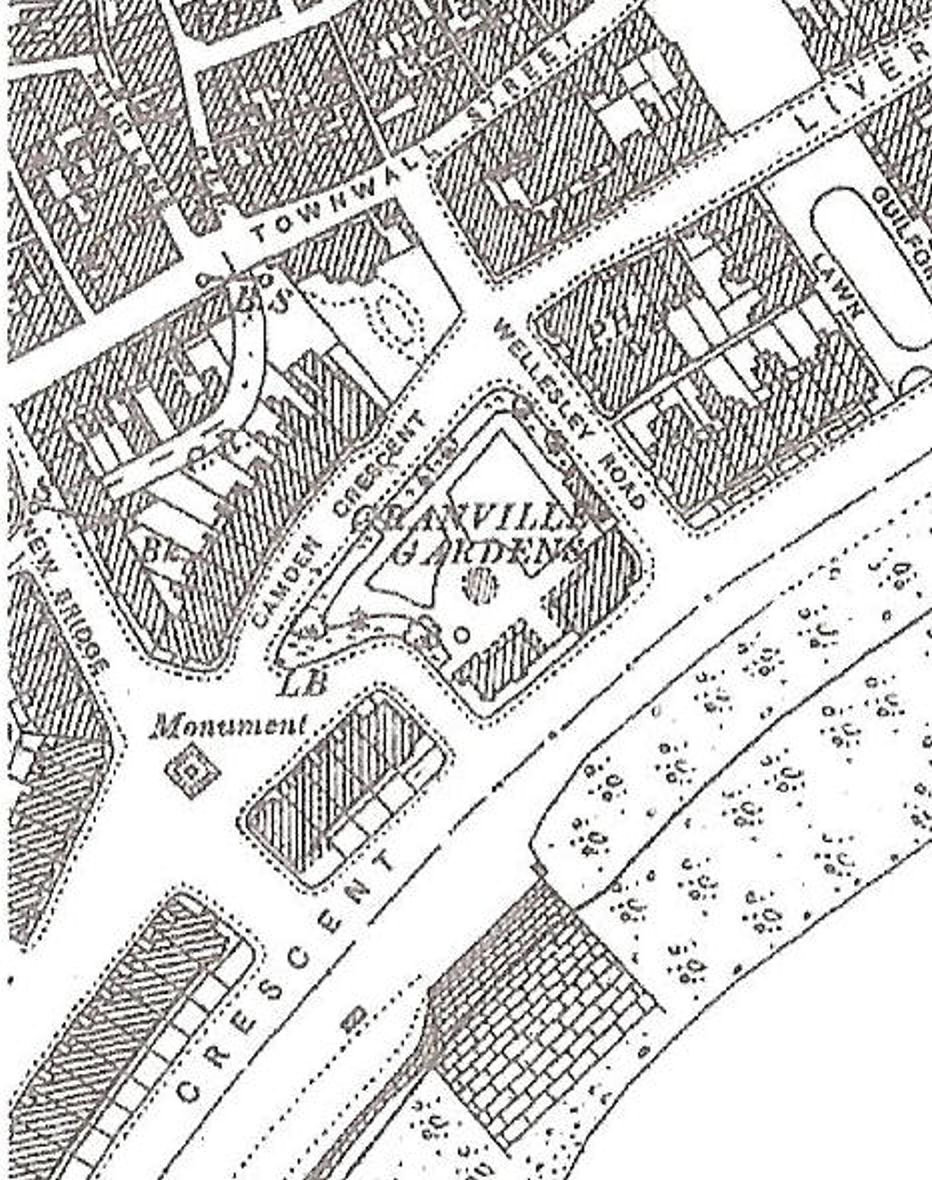 1890 Map showing the Rifles Monument’s location between Camden Crescent and New Bridge near the seafront.
