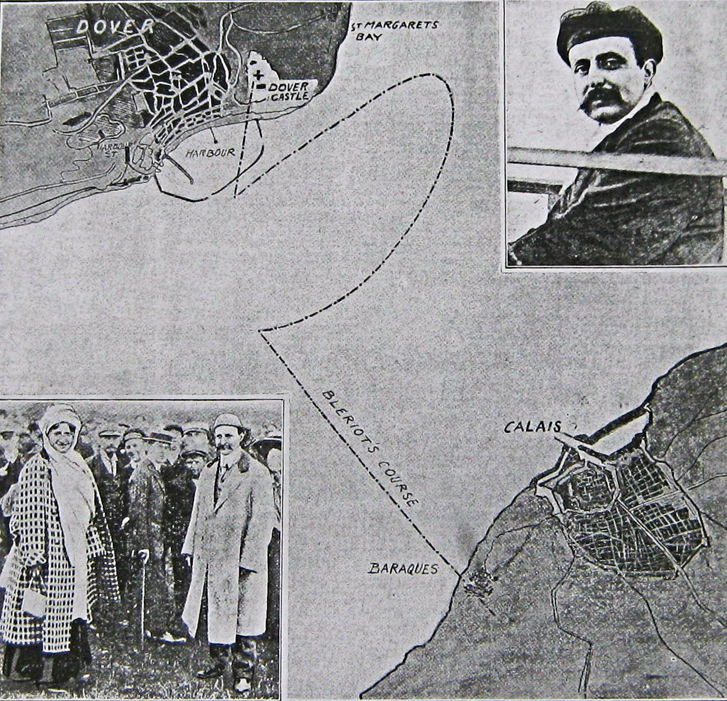 On 31 October 1908 Louis Blériot, (1872-1936), designed a monoplane that managed to fly a distance of 17 miles from Toury to Ateny both in Northern France, making two landings en-route and setting a record for distance flown. Two weeks before, 16 October, a former American cowboy, Samuel Cody (1867-1913), made the first powered flight in the British Isles. Together, these two events led the Daily Mail to offer a £1,000 prize to the first person to cross the English Channel in a heavier-than-air machine. This Blériot achieved on Sunday 25 July 1908, flying his Blériot No XI 25-horsepower monoplane from Sangatte, on the northern coast of France, to Northfall Meadow behind Dover Castle. From then on the development in aviation was rapid.