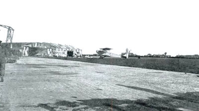 Guston Aerodrome off Deal Road. Duke of Yorks school clock tower can be seen. Dover Transport Museum