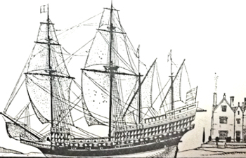 During this time innovations were taking place in shipbuilding which had passed Dover by. These included the development of caravels, small highly manoeuvrable ships, by the Portuguese for exploration of the African coast. They had gently sloping bows and single stern castles, two masts and on the mizzenmast lateen sails could bet set for speed, particularly when sailing to windward. Lateen sails were triangular with a long yard held at an angle of 45° to the mizzenmast. The other major innovation in shipbuilding was the carrack. This was a much larger three or four-masted ocean-going sailing vessel of up to a 1,000tons with significant cargo space for long journeys and enabling it to carry large payloads. The carrack initially had one large sail, as shown in the picture, but as the 16th century progressed the number of square sails were increased to provide a much larger sail area. They were hung above the courses on the mainmast and foremast. The mizzenmast was rigged with a fore-and-aft triangular lateen sail and sometimes a square sail was hung beneath the bowsprit forward of the bow. They had high stern castles and an even higher fore castle thrusting out over the bow. These ships required a large crew to handle them and they were usually armed with cannons.