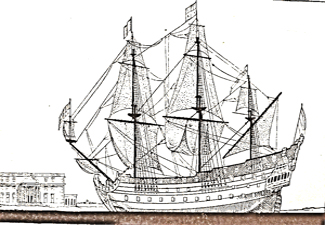 It would seem that Cullen showed a prototype of a galleon in the Bay Because due to the poor state of the harbour, and potential buyers were actively sort out. Soon the Cullen shipyard were producing galleons as one off designs following a standard pattern and were much larger than the ships previously built in Dover. Although the Dover galleons still had a forecastle and poop these were lower than their earlier counterparts, the bows were more rounded and the hulls were more streamlined. Although the Dover ships artists had suffered during the religious persecutions, painters slowly emerged and expanded their craft into woodcarving. Splendid ships figureheads apparently became the norm of Dover produced ships.