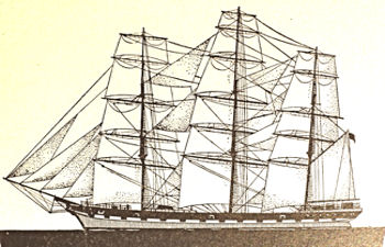 Besides the main and mizzen masts, a four masted barque also had fore and jigger masts, while the fifth mast was sometimes called spanker or pusher mast. Other aspects to be noted of sailing vessels is that a lift takes the weight of a yard or boom, halliards – also written halyard – raise or lower a spar or sail, braces control the fore-and aft movement of the yards and the clew lines lift and lower corners of a square sail. To bend a sail was to attach it to the yard or boom, and to furl it was to secure it temporarily to a spar by short lengths of line called gaskets. Finally, a full-rigged ship was a sailing vessel with yards and square sails on all masts.