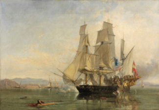 The French Revolution (1789-1799) started on 11 July 1789 and fearing what may happen to Britain, the government started to make preparations. The Admiralty increased its ship building policy and in September 1790, the Royal Navy recommissioned the Circe. They paid the money they owed for the ship and thus saved the Ladd shipyard. During the Napoleonic Wars the Circe was involved in the capture of the 14-gun L’Espiegle, off Ushant November 1793; took part in the Battle of Camperdown off the North Holland coast, 11 October 1797; the attack on Ostend on 18 May 1798. She also took the 12-gun Lijnx and 8-gun schooner Perseus at the mouth of the River Ems, northwestern Germany on 11 October 1799 but was wrecked on the Lemon and Ower Bank off Norfolk on 17 November 1803. In December 1797 the Circe was under the command of Captain Robert Winthrop (1764-1832) later Admiral of the Blue, who died at his residence in Dover on 10 May 1832.