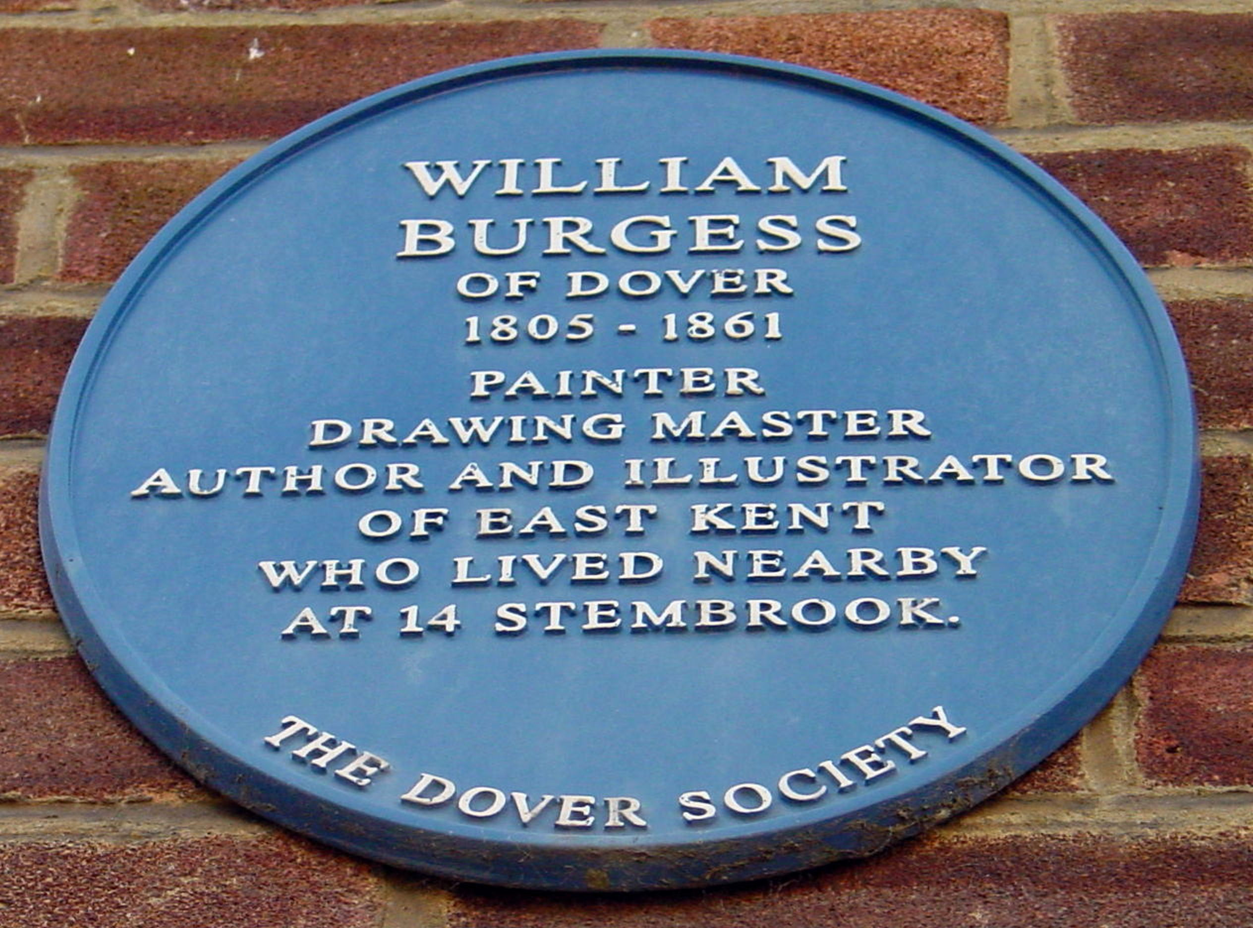 Meanwhile, artist William Burgess (1805-1861), who was arguably Dover’s greatest painter, was living in one of the crowded properties that faced the Stembrook thoroughfare and Castle Street. Burgess had been born in Canterbury and from an early age was encouraged to draw in order to decorate his uncle’s coaches. After a spell travelling around Europe, Burgess married Harriet (c1816-1884) from Deal and settled in Dover eventually moving to 14 Stembrook with a door for customers at 69 Castle Street. His prestigious talent was recognised and exhibited at the Royal Academy and by the Royal Society of British Artists. In 1844, Burgess opened a Cosmorama, which proved a great tourist attraction and brought him further and wider recognition. Indeed, his paintings and lithograph prints of Shakespeare Cliff in the Cosmorama were so popular that that a nearby alley was named Shakespeare Place! William died on 30 July 1861 and Harriet, married local builder Parker Ayres (1810-1885), who had laid out Norman and Saxon Streets in 1846. Dover Museum hold a collection of Burgess’ works and high up on a wall near the corner of Stembrook and Castle Street, is a Dover Society plaque dedicated to him.